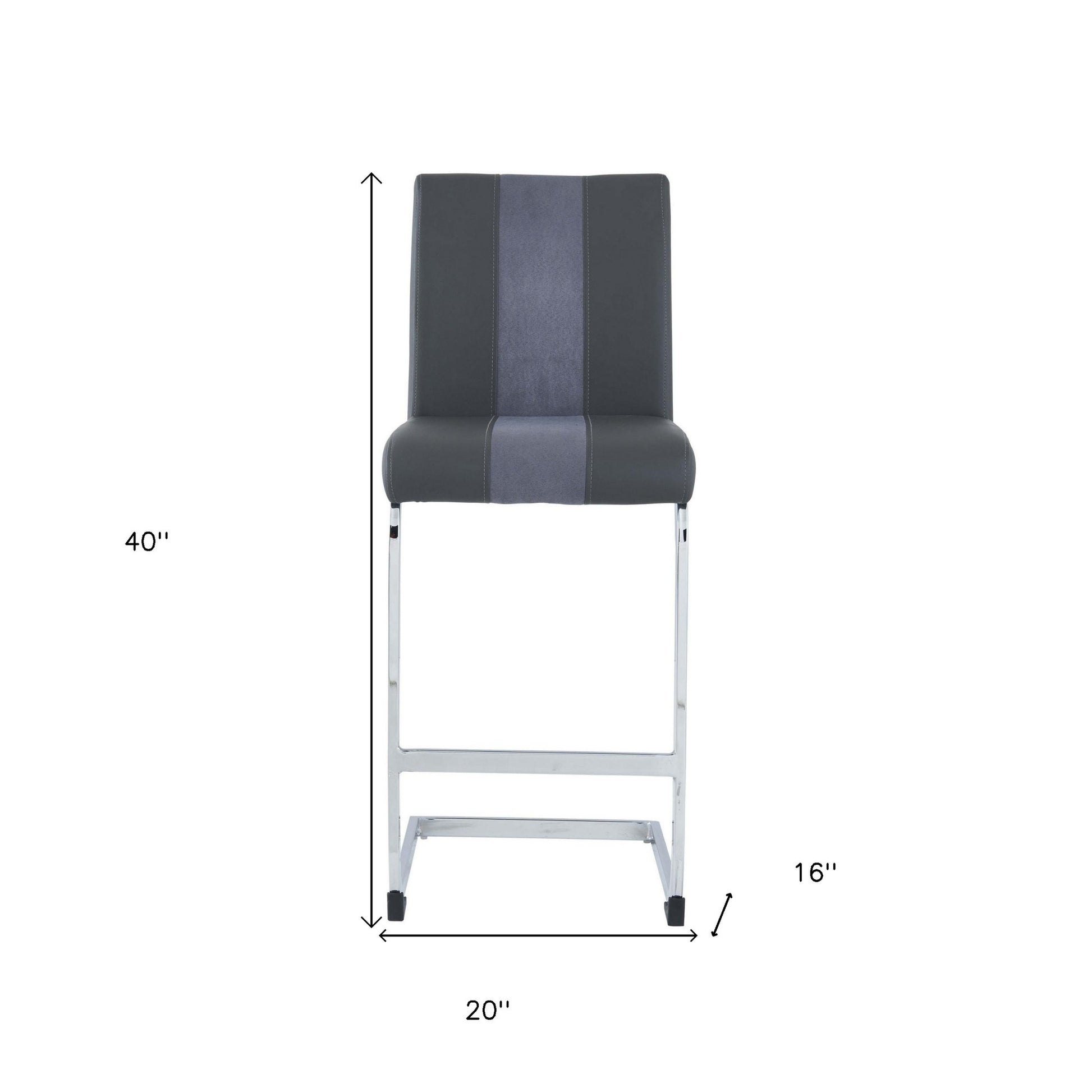 Comfortable enough to sit in for awhile, this set of four 26-inch gray and silver metal low back counter height bar chairs with footrest will transcend the look of your room. A silver metal frame is finished off with a gray solid and manufactured wood seat that is the epitome of quality construction and design. A low back mixed with a square shaped seat design makes this chair both comfortable and fashionable. Designed with a footrest for comfort and convenience. 40-inch H x 20-inch W x 16-inch D