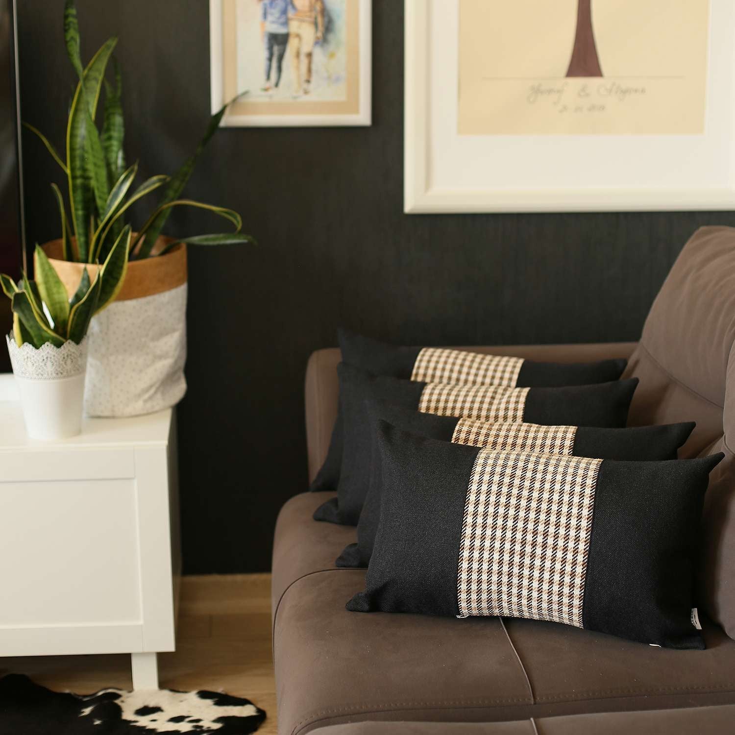 Set Of 4 Tan And Black Center Lumbar Pillow Covers