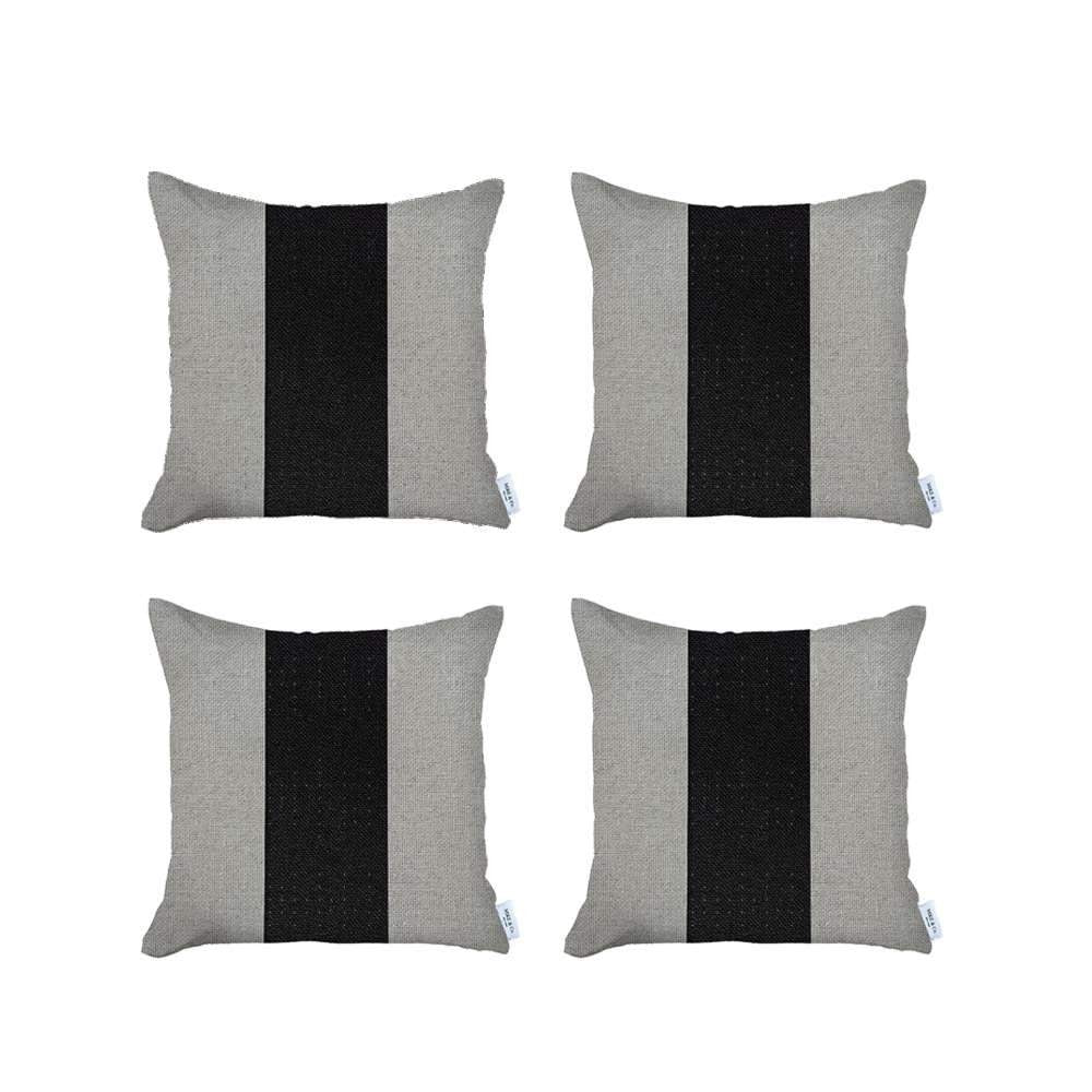 Set Of Four 18" X 18" Grey And Black Geometric Zippered Handmade Polyester Throw Pillow