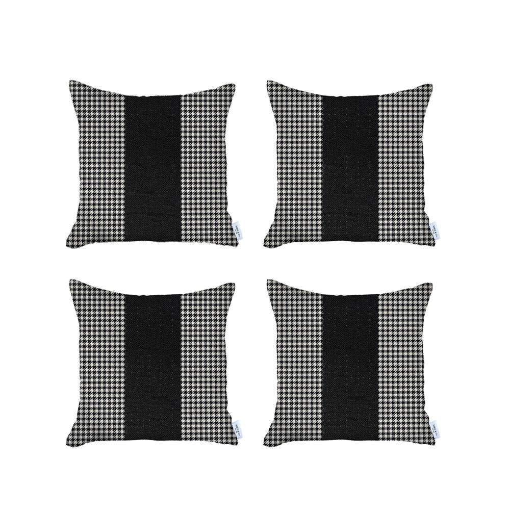 Set Of Four 18" X 18" White And Black Houndstooth Zippered Handmade Polyester Throw Pillow