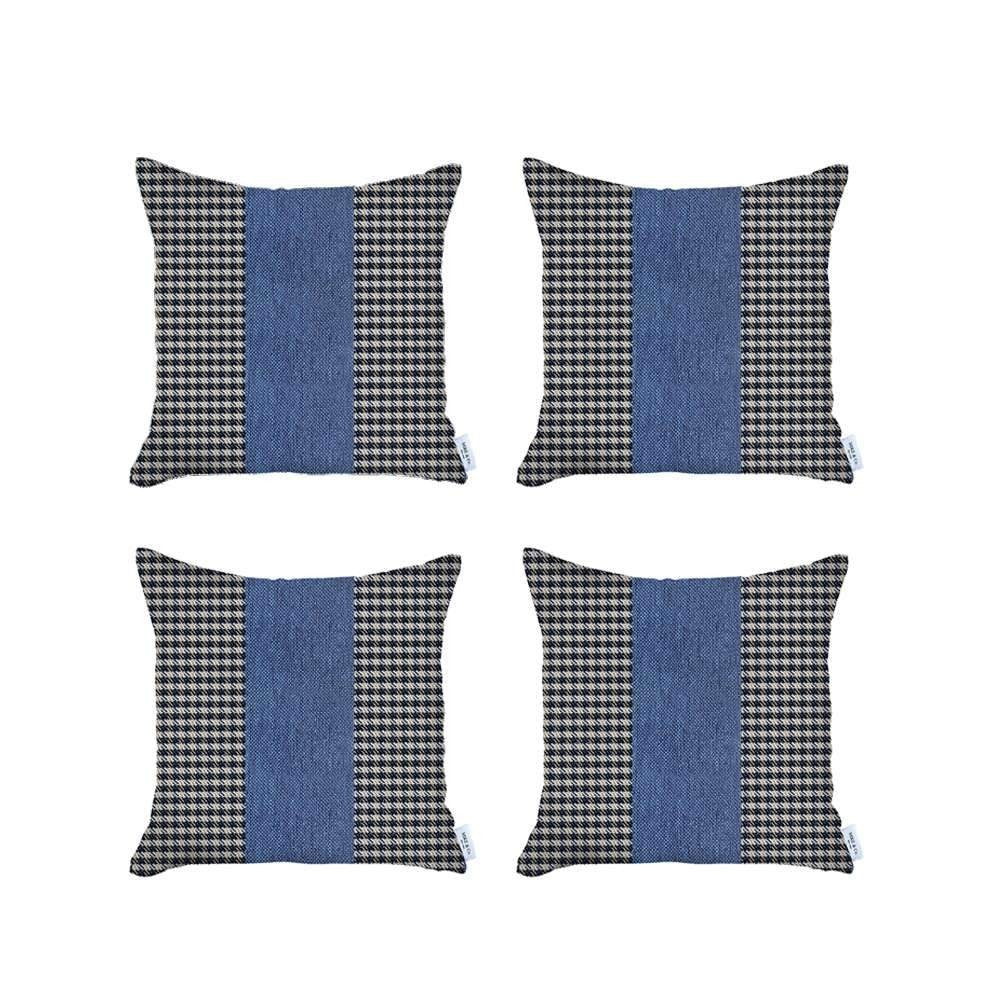 Set Of Four 18" X 18" White And Blue Houndstooth Zippered Handmade Polyester Throw Pillow