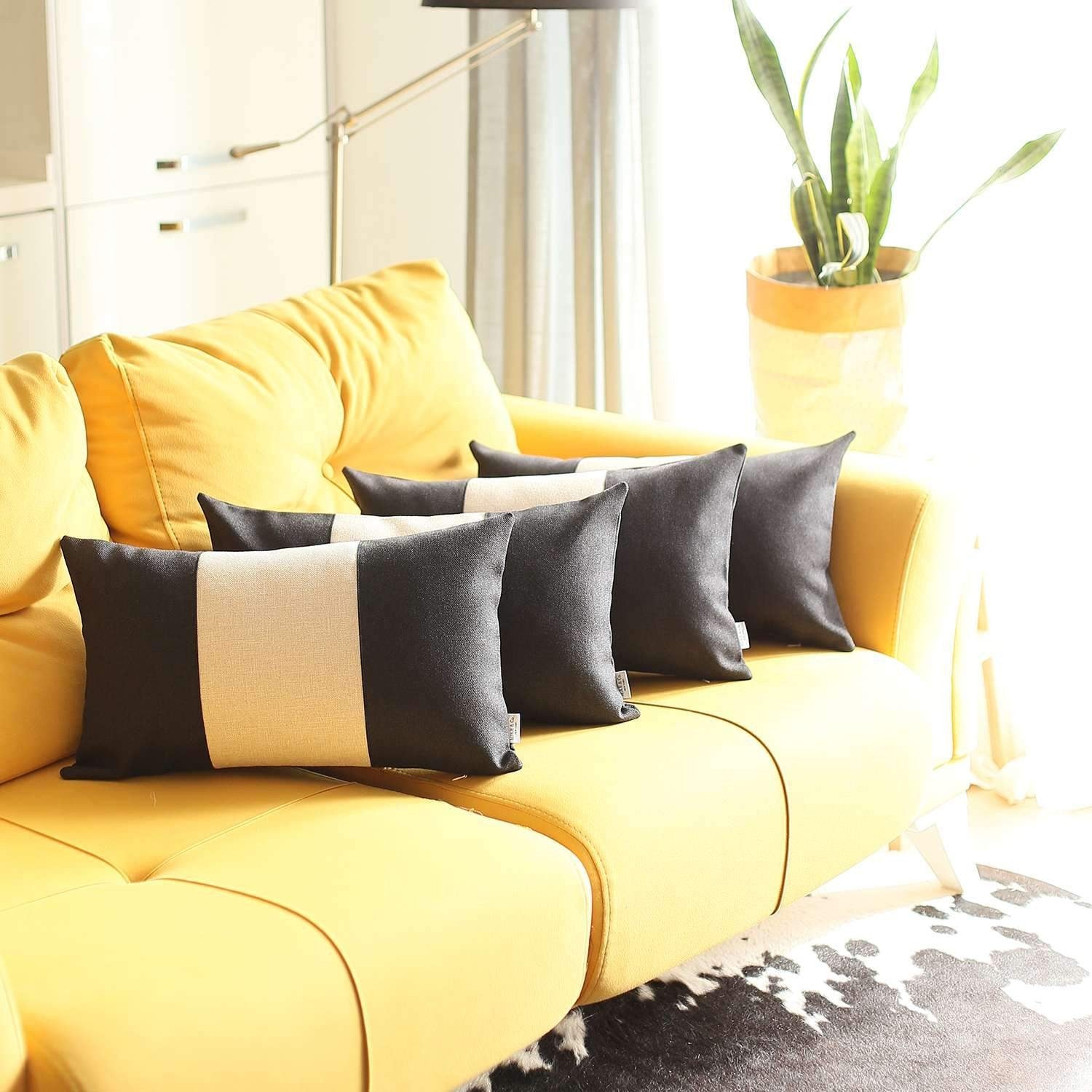 Add an air of fashion to your room and rejuvenate the space with this cute and fashionable set of four 20" x 12" black and grey geometric zippered handmade polyester lumbar pillow. These black and grey hued pillows represent quality construction, expertly made from durable polyester that is not only long lasting but super soft to the touch as well. For anyone that loves to decorate or accent their space with color and texture. A great decorative accessory for your favorite chair, to accent your sofa, or to use as part of your bed ensemble. 6.4" H x 20" W x 12" D
