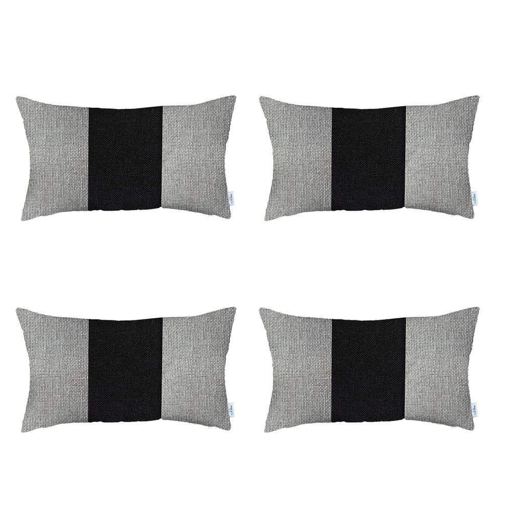 Add an air of fashion to your room and rejuvenate the space with this cute and fashionable set of four 20" x 12" grey and black geometric zippered handmade polyester lumbar pillow. These grey and black hued pillows represent quality construction, expertly made from durable polyester that is not only long lasting but super soft to the touch as well. Decorative throw pillows not only add color and dimension to your space but can be comfy and supportive when you are lounging and cuddling as well. A great decorative accessory for your favorite chair, to accent your sofa, or to use as part of your bed ensemble. 6.4" H x 20" W x 12" D