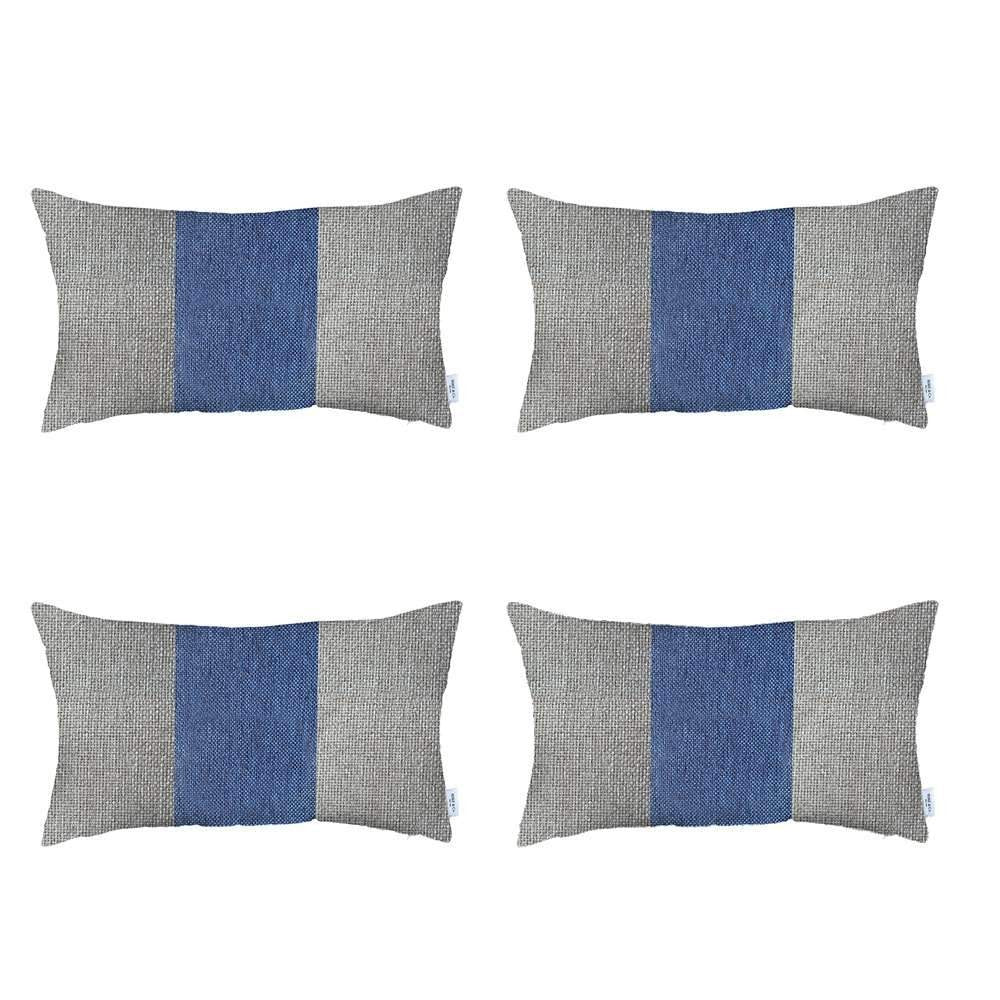 This set of four 20" x 12" grey and blue geometric zippered handmade polyester lumbar pillow will add a beautiful decorative accent to your decor. These grey and blue hued pillows represent quality construction, expertly made from durable polyester that is not only long lasting but super soft to the touch as well. Great to use on its own or mix with other decorations for the perfect look. A great decorative accessory for your favorite chair, to accent your sofa, or to use as part of your bed ensemble. 6.4" H x 20" W x 12" D