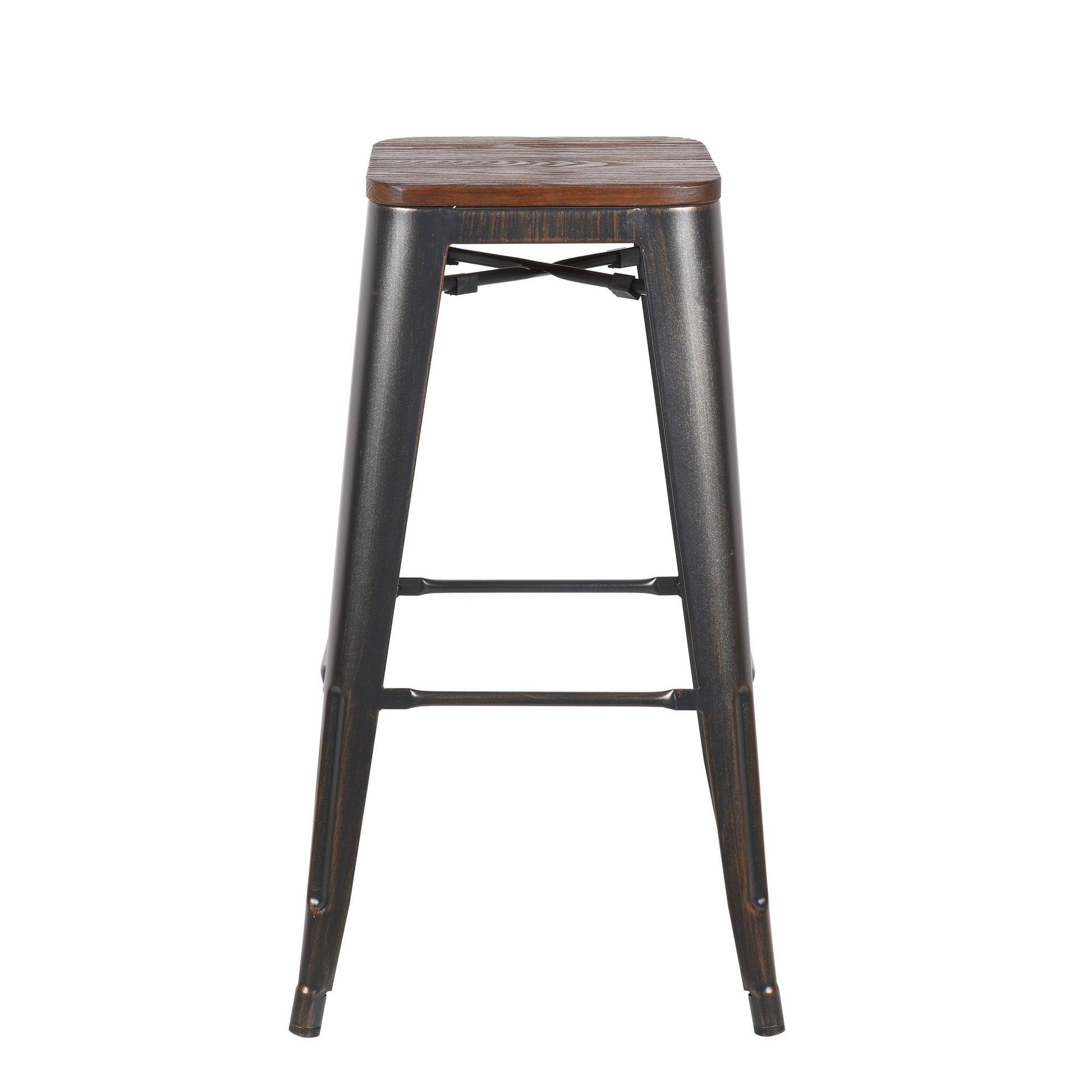 Bring a trendy bar vibe to your space, with this set of four 30" brown and black backless bar height bar chairs with footrest. Quality construction from black manufactured wood combines with brown manufactured wood to give this stool a fresh and updated look. Designed to be good looking and practical, this backless bar chair features a square shaped seat. Designed with a footrest for comfort and convenience. 29.53" H x 17.13" W x 17.13" D