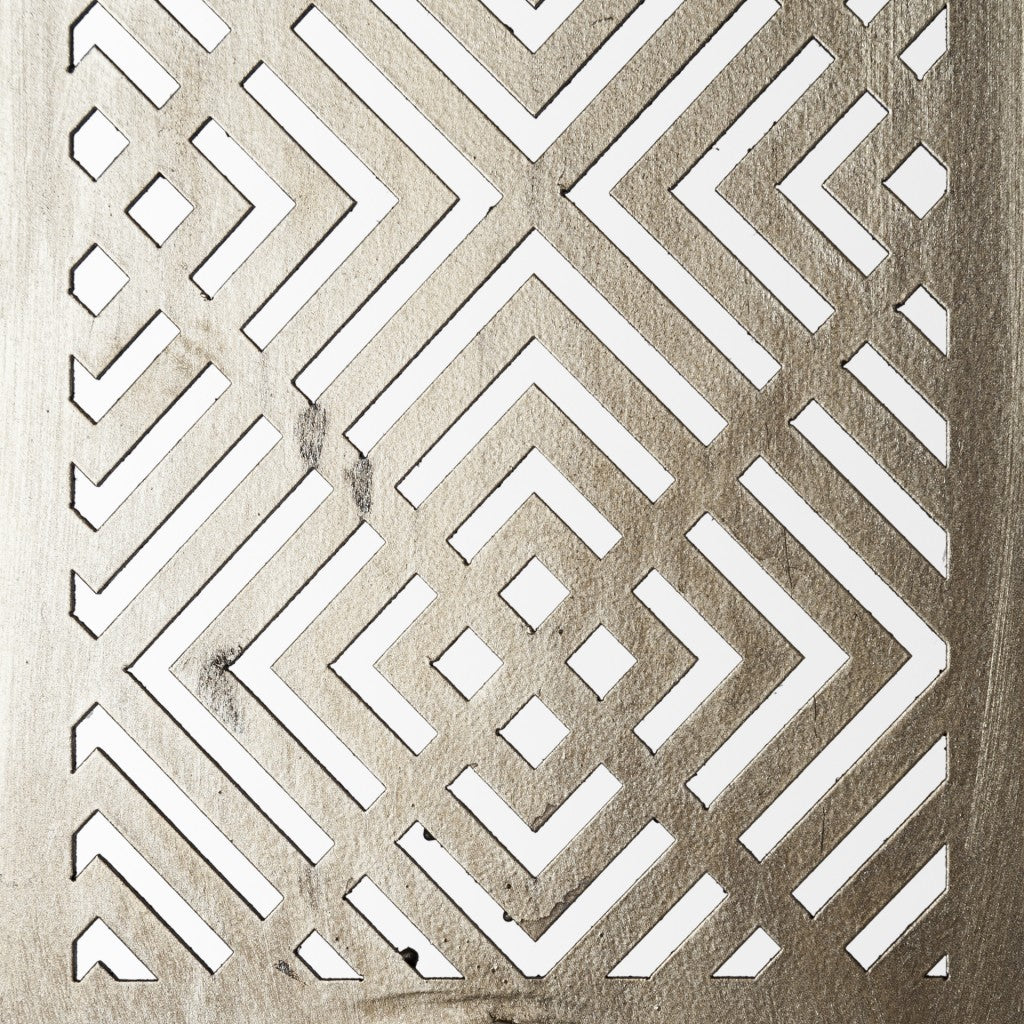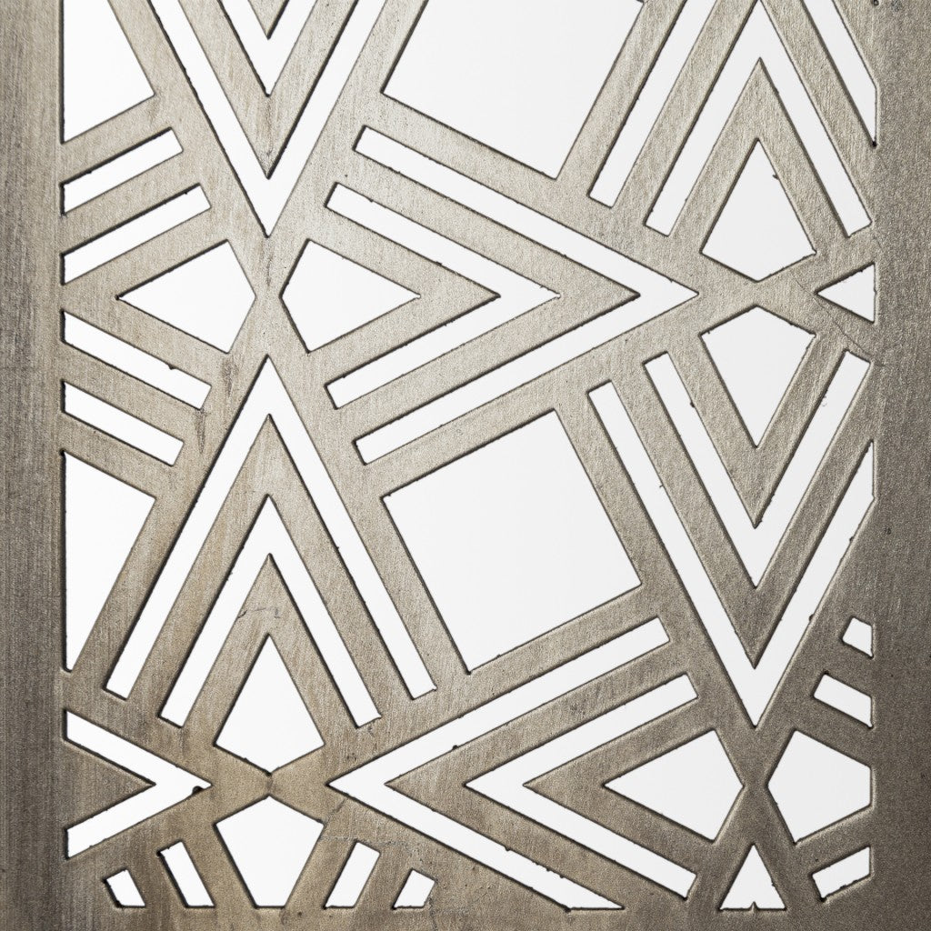With this Set of Three Gold Patterned Decor Pieces you can elevate any space in your home. These contemporary decor pieces are made from solid metal and have a stunning matte gold finish on them. All of these pieces have solid metal bases out of which there are metal rods that go up into the metal sheets that have geometric patterns cutout in them. One of the pieces has a thin and intricate endless diamond design while another has an abstract triangle design. The third piece has a dotted pattern on it. All of these three pieces are in varying heights and look great whether displayed in your living room or your hallway. The neutral gold finish will work with any interior style or colors you have in your home. 28" H x 12" W x 4" D