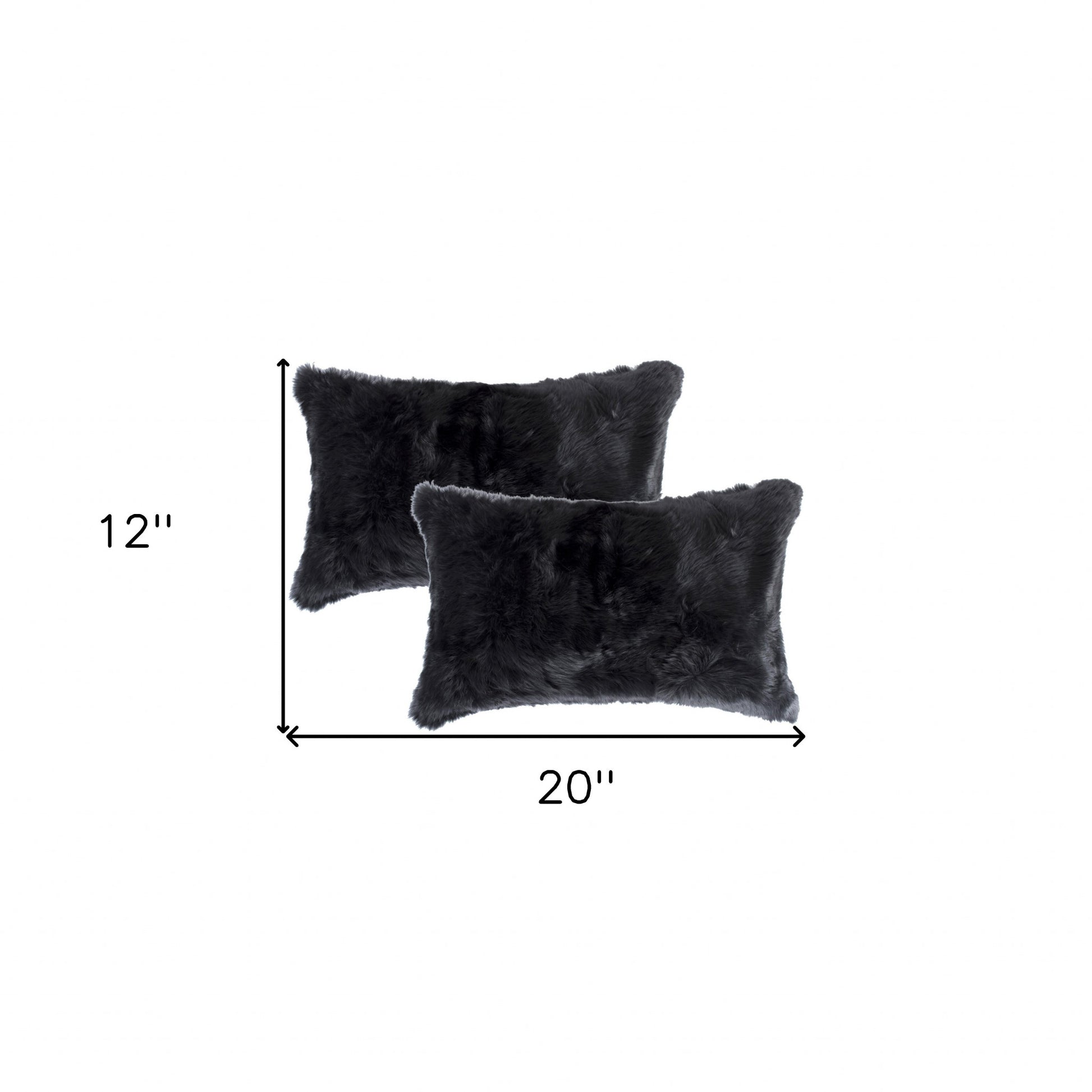 Bring a bit of fashion and zip to your space with this eye-catching and comfy set of two 12" x 20" black rabbit natural fur throw pillows. These gorgeously luxurious and chic pillows are expertly made of high grade natural fur in a black coloration. Makes a perfect decorative addition for anyone who loves a stylish look and feel. A great decorative accessory for your favorite chair, to accent your sofa, or to use as part of your bed ensemble. 5" H x 12" W x 20" D