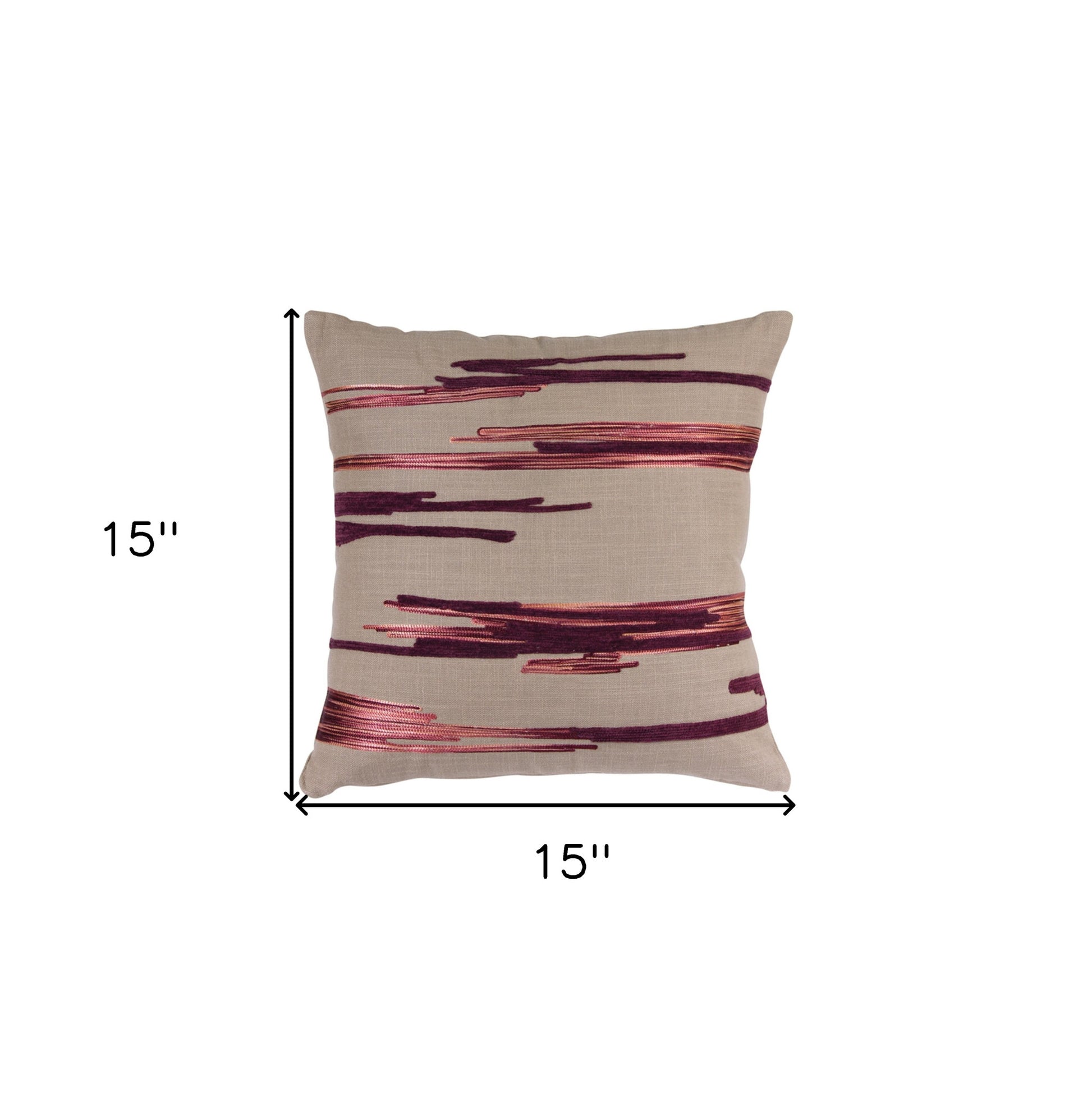 Bring a bit of fashion and zip to your space with this eye-catching and comfy set of two 15" beige and wine striped cotton blend throw pillows with sequins. These beige and wind hued pillows represent quality construction, expertly made from durable cotton blend with gorgeous sequin applique that is not only long lasting but super soft to the touch as well. For anyone that loves to decorate or accent their space with color and texture. Decorative pillows are a great way to change up the look and feel of your space easily and quickly. 15" H x 6" W x 15" D