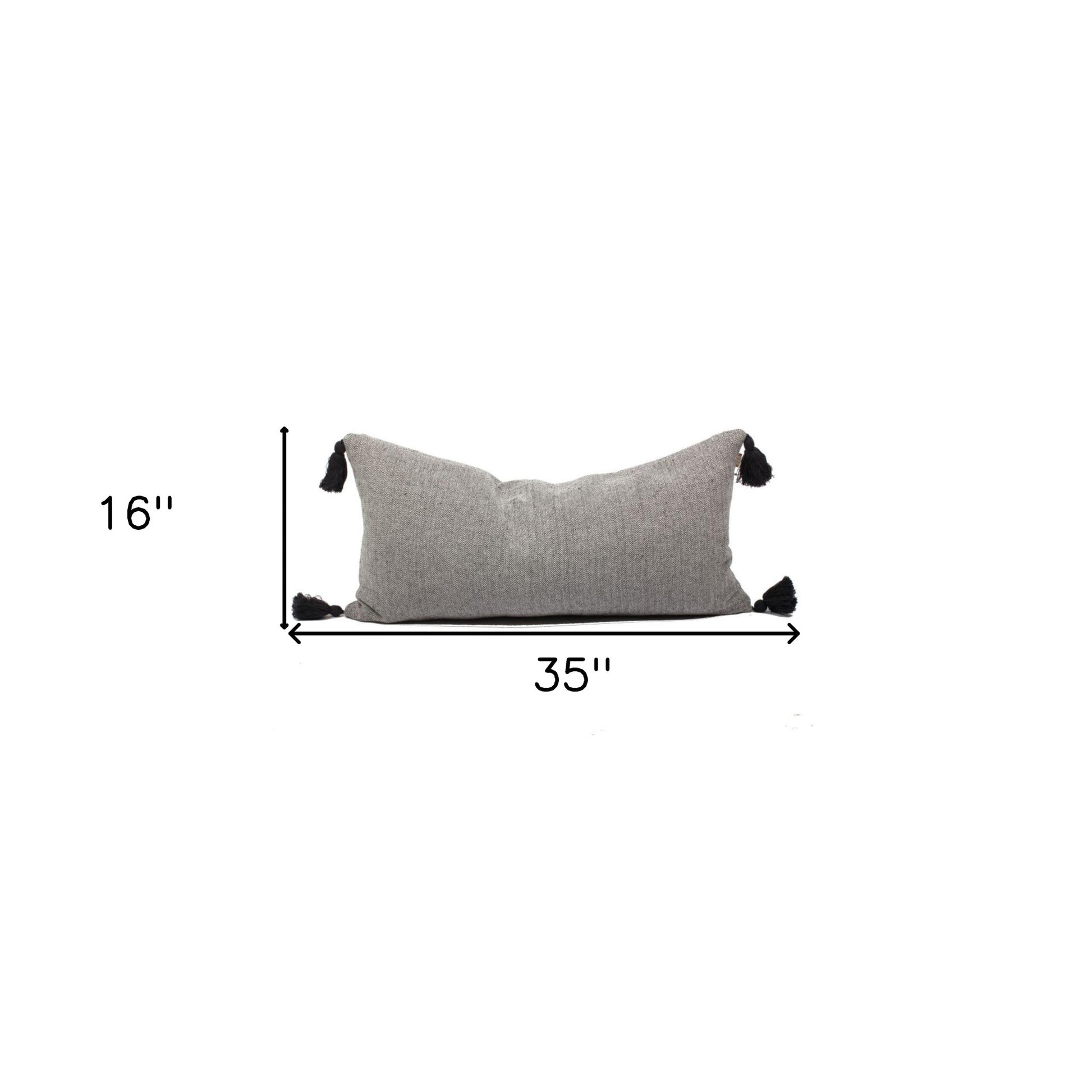 Set Of Two 16" x 35" Dark Slate Gray 100% Cotton Herringbone Pillows With Tassels