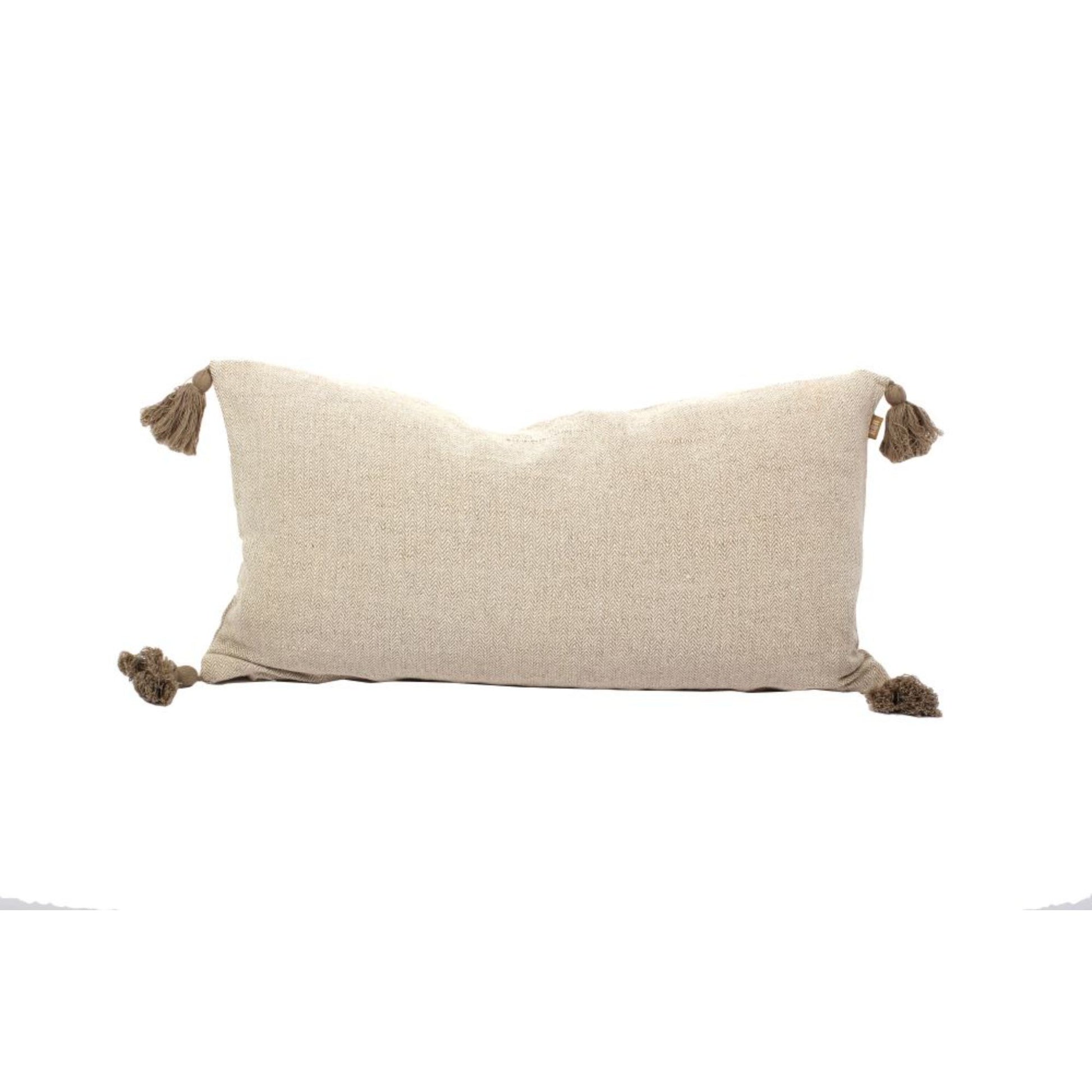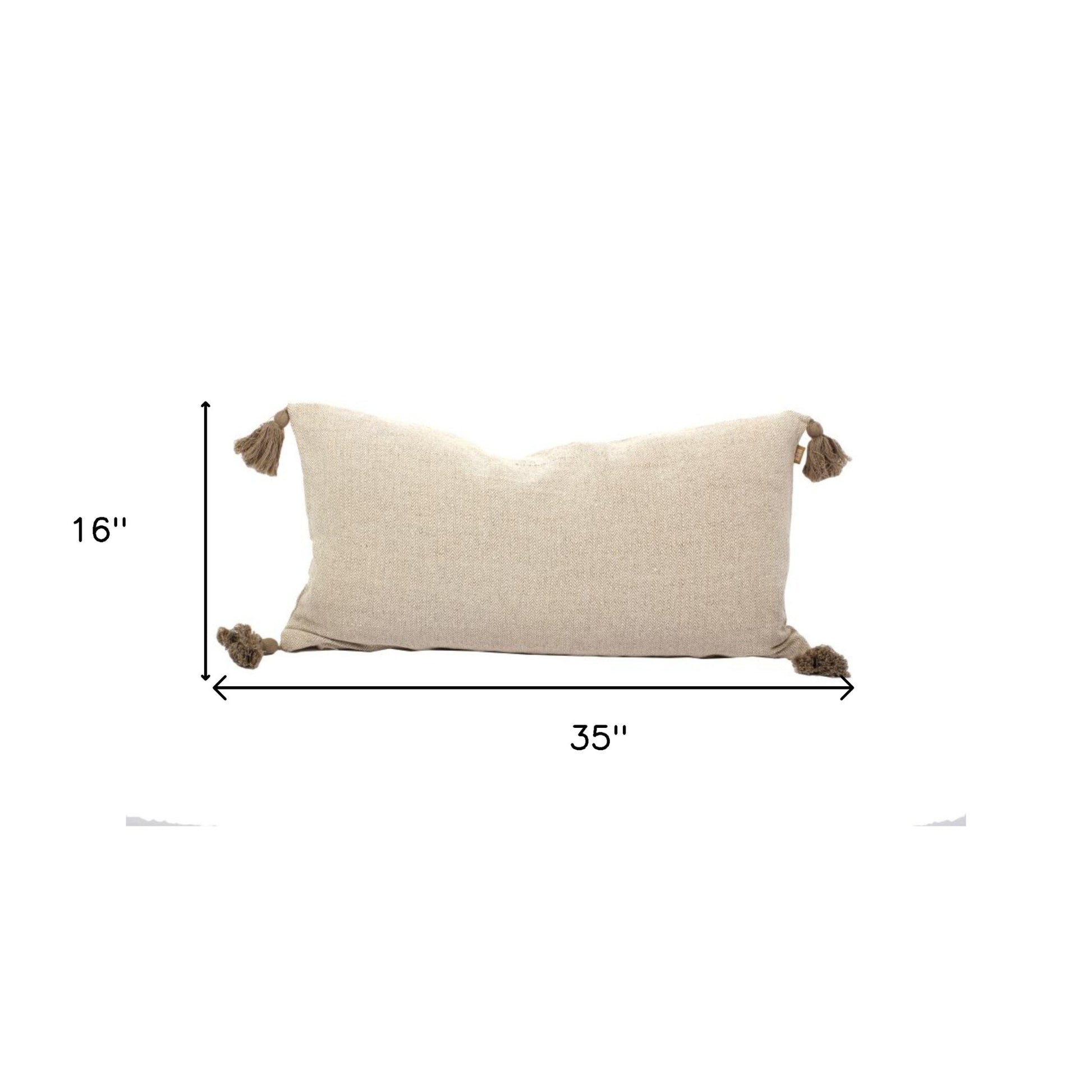 Set Of Two 16" x 35" Taupe 100% Cotton Herringbone Pillows With Tassels