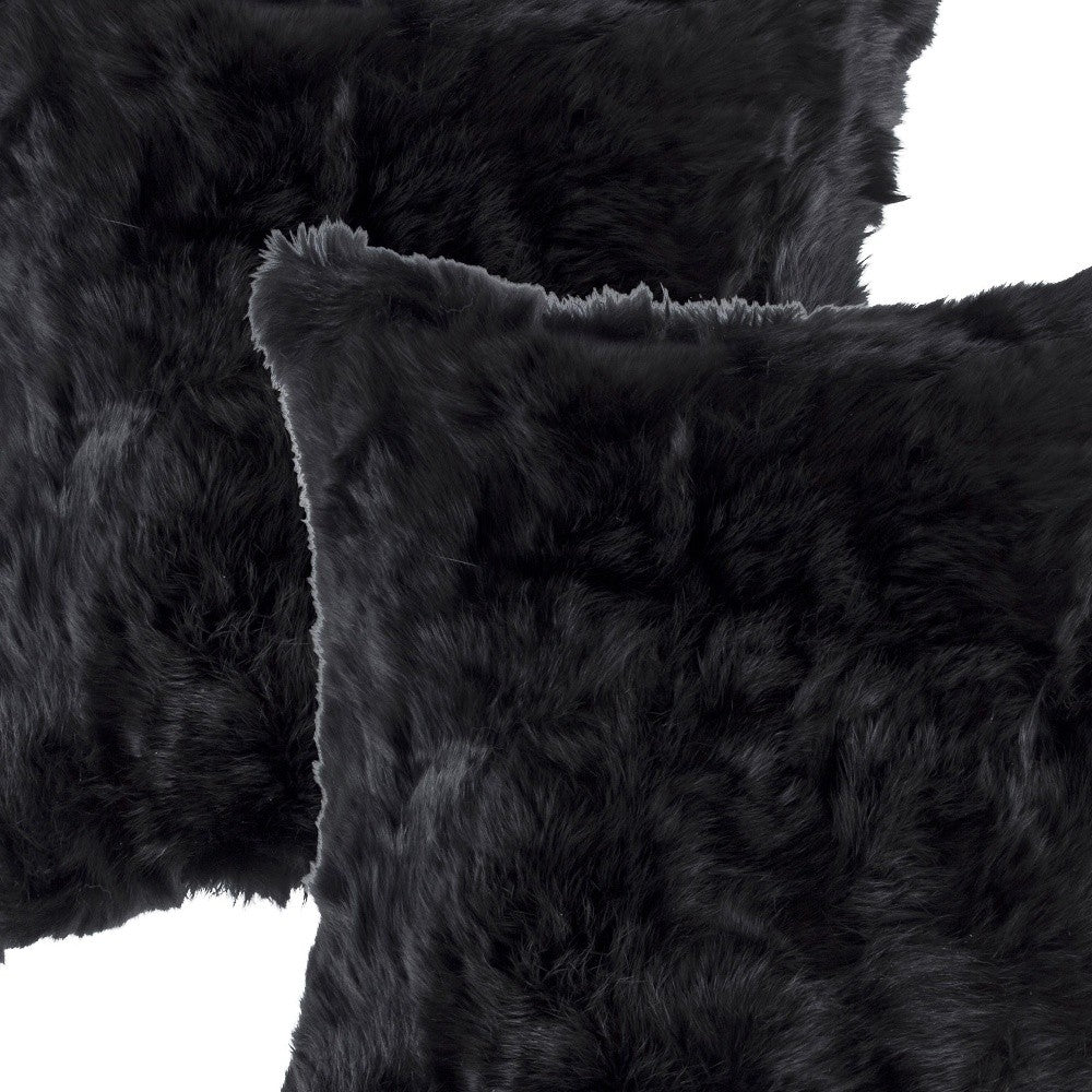 Set Of Two 18" X 18" Black Rabbit Natural Fur Animal Print Throw Pillows