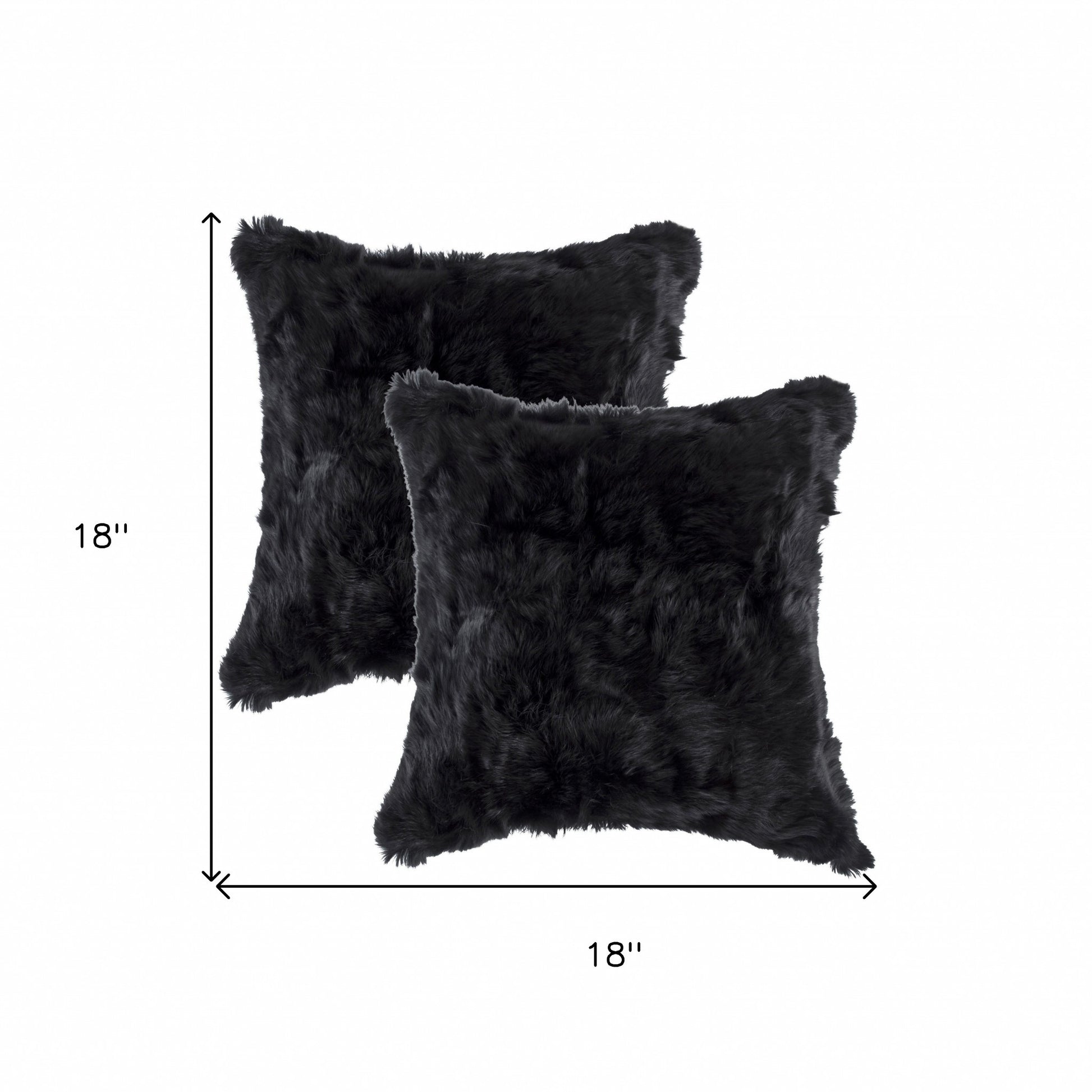 Add an air of fashion to your room and rejuvenate the space with this cute and fashionable set of two 18" x 18" black rabbit natural fur animal print throw pillows. These luxurious and chic pillows are expertly made of high grade natural fur in a black coloration. Great to use on its own or mix with other decorations for the perfect look. You can be certain that you'll be leaving an impression with this unique piece. 5" H x 18" W x 18" D