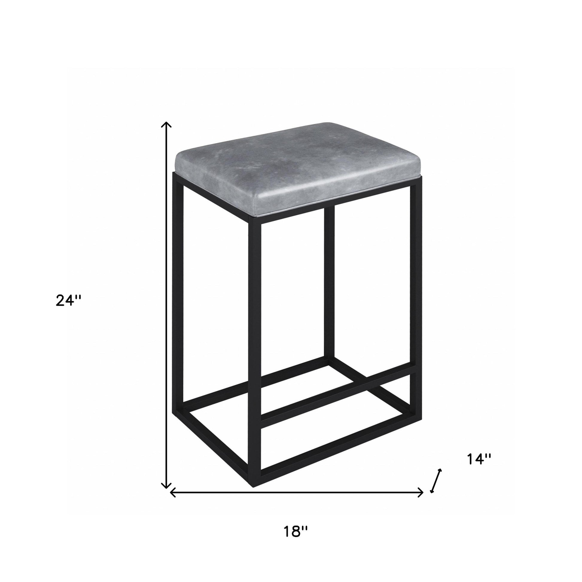 With this set of two 24" gray and black faux leather and metal backless counter height bar chairs with footrest you can add design and extra seating to your space. A black metal frame is finished off with a gray faux leather seat that is the epitome of quality construction and design. The square shape of the seat give this backless chair a fresh and fashionable look. Designed with a footrest for comfort and convenience. 24" H x 18" W x 14" D