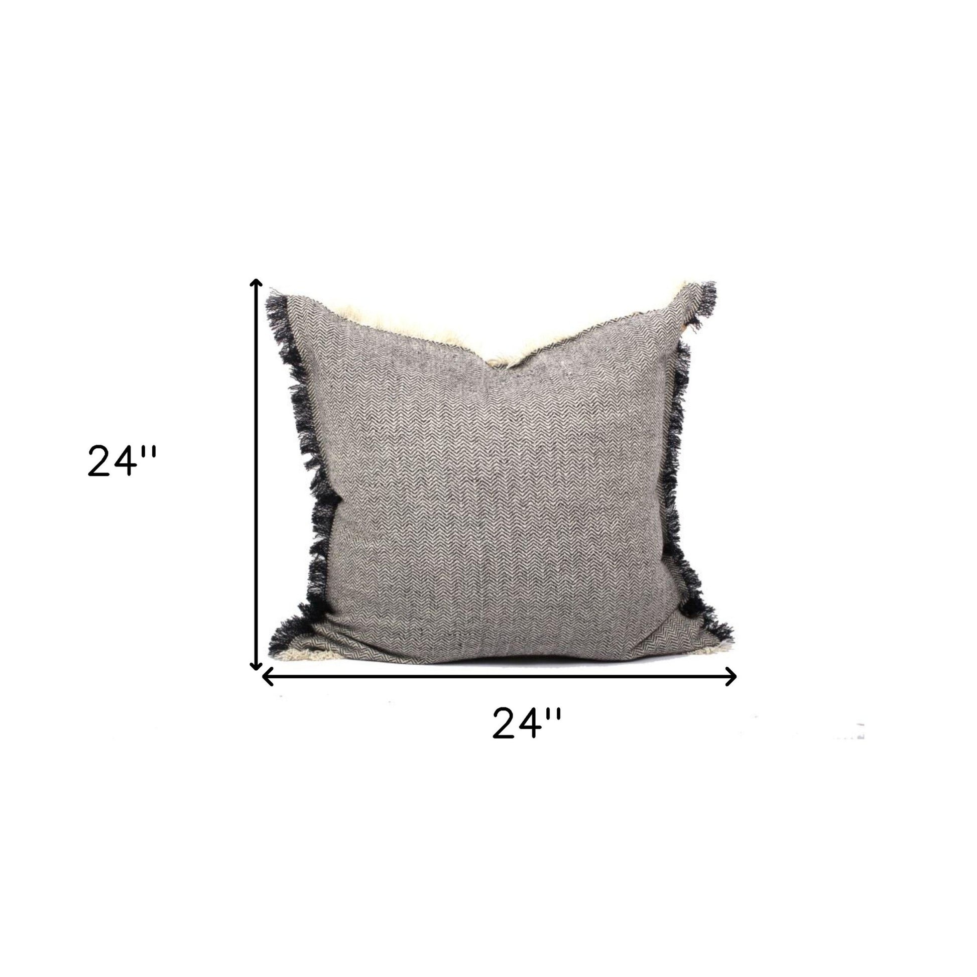 Unique and decorative, this comfortable set of two 24" x 24" dark slate gray 100% cotton herringbone zippered pillows with fringe will leave a lasting impression. This dark slate gray colored decorative pillow set is made from high grade 100% cotton that makes them super soft to the touch and and long lasting. Charming decorative fringe give this design texture along with a hand-crafted look and feel. This soft polyfill pillow not only is decorative but made to be comfy and cozy all day long. Great to use on its own or mix with other decorations for the perfect look. Decorative pillows are a great way to change up the look and feel of your space easily and quickly. 24" H x 24" W x 6" D