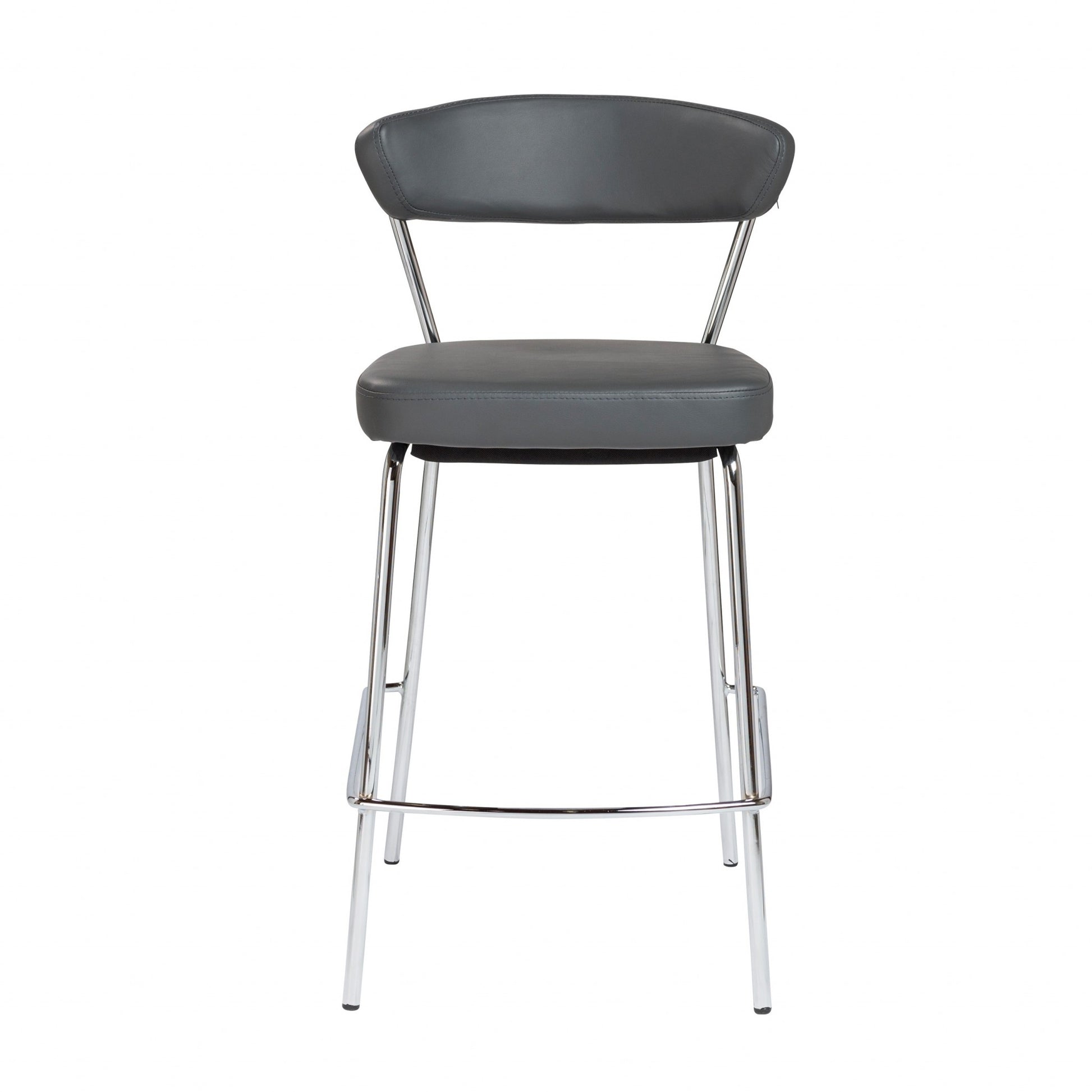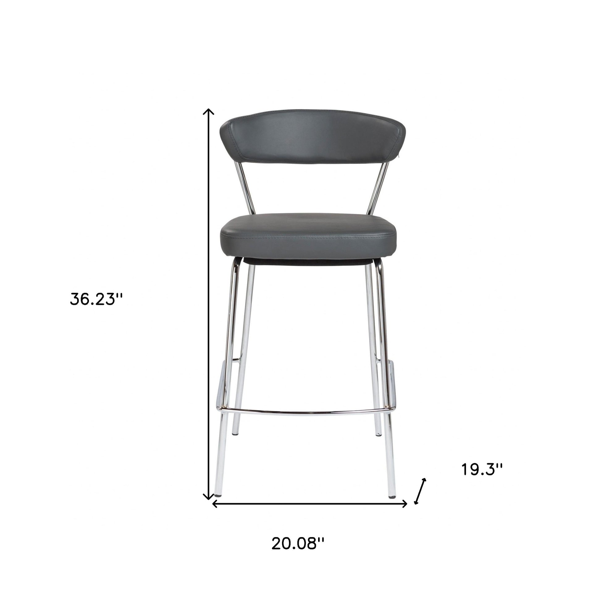 Comfort and design come together nicely in this set of two 36" gray and silver steel low back counter height bar chairs with footrest. Quality construction from silver steel combines with gray upholstered to give this stool a fresh and updated look. The square shape of the seat combines with a low back to give this chair a comfortable and fashionable look. Designed with a footrest for comfort and convenience. 36.23" H x 19.3" W x 20.08" D