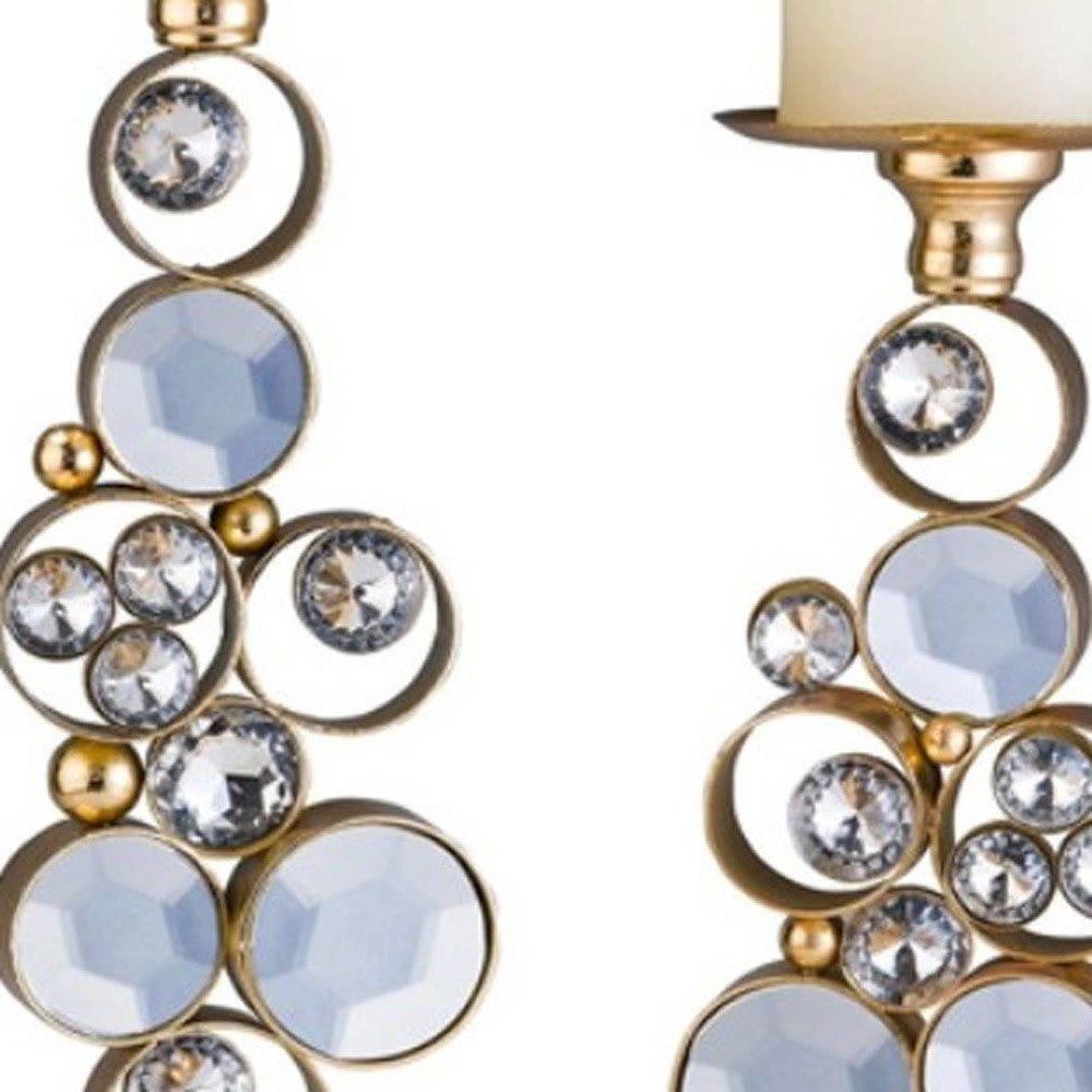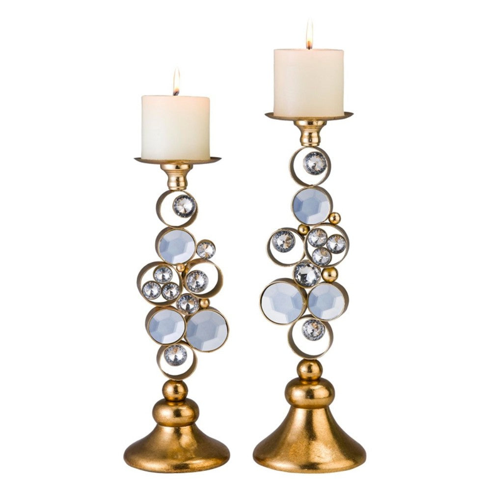 Set Of Two Gold Bling Tabletop Pillar Candle Holder