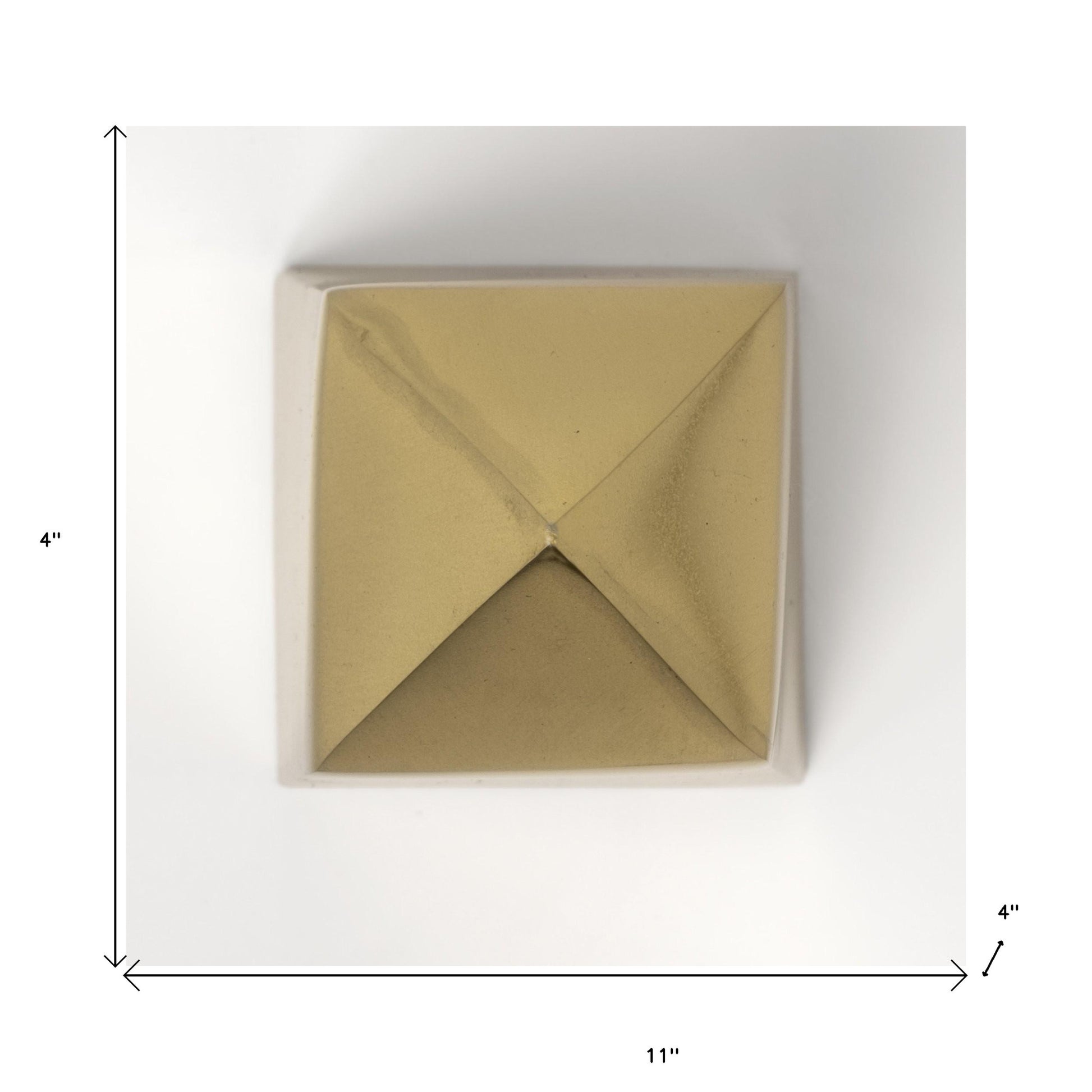 With this Set of Two Gold Metal Elongated Pyramid Decor Pieces you can bring in the perfect touch of contemporary design to your home. This set has two elongated pyramids in two different sizes. The pieces are made from solid metal and have a tall and narrow body with a pyramid shaped top. The matte gold color makes them minimal yet unique enough to elevate any space they are placed in. You can use both of them in same place or break them up and use them around your home. 11" H x 4" W x 4" D
