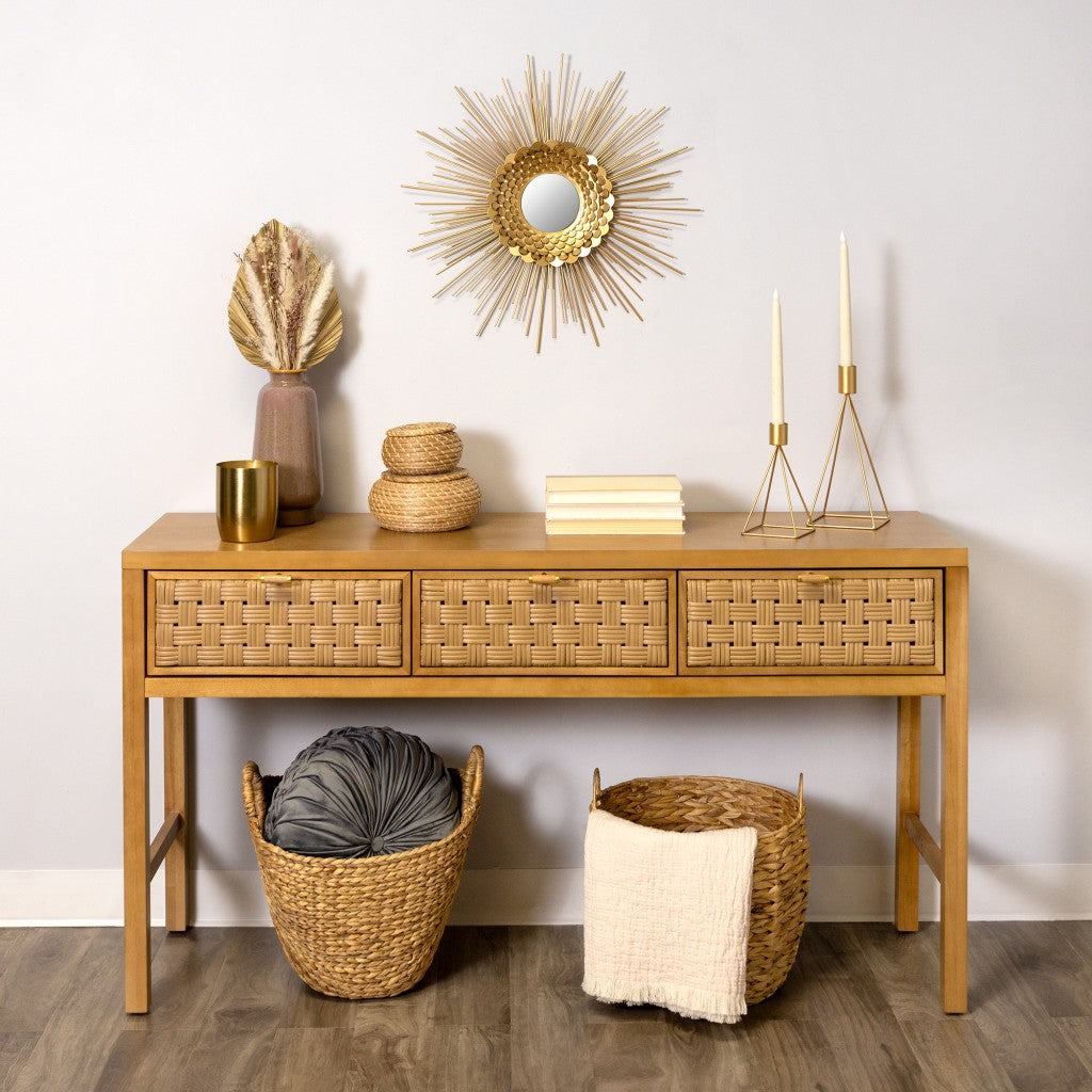 With this Set of Two Gold Metal Geometric Candle Holders you can add a touch of modern décor to any space in your home. There are two candle holders in this set in varying sizes, one bigger and one smaller. Both candle holders are made from metal and are colored to a stunning gold finish. The base of each is in a simple square shape with a thin metal rod coming out of each corner and narrowing as it moves towards the top. The metal rods join up at the base of the cylindrical candle holder at the top. These candle holders will elevate the look of your living room, dining room, or even your kitchen owing to the simple yet unique design. 11" H x 5" W x 5" D