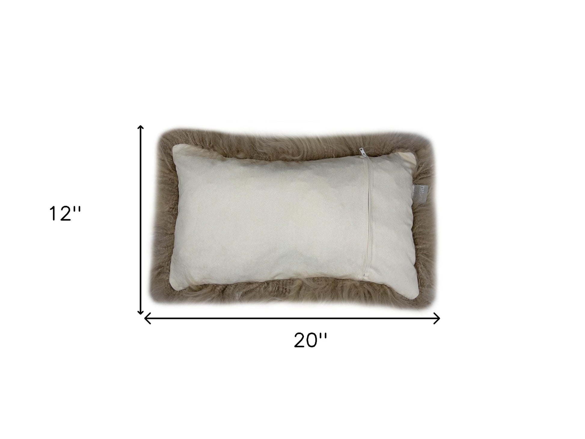 Set Of Two Taupe Natural Sheepskin Lumbar Pillows