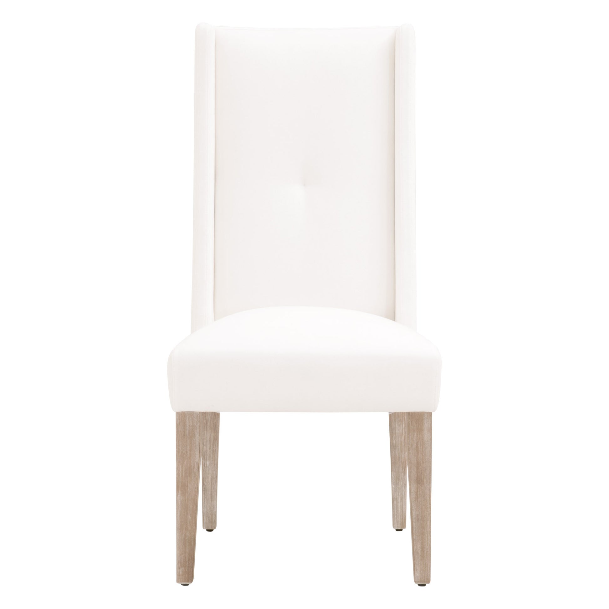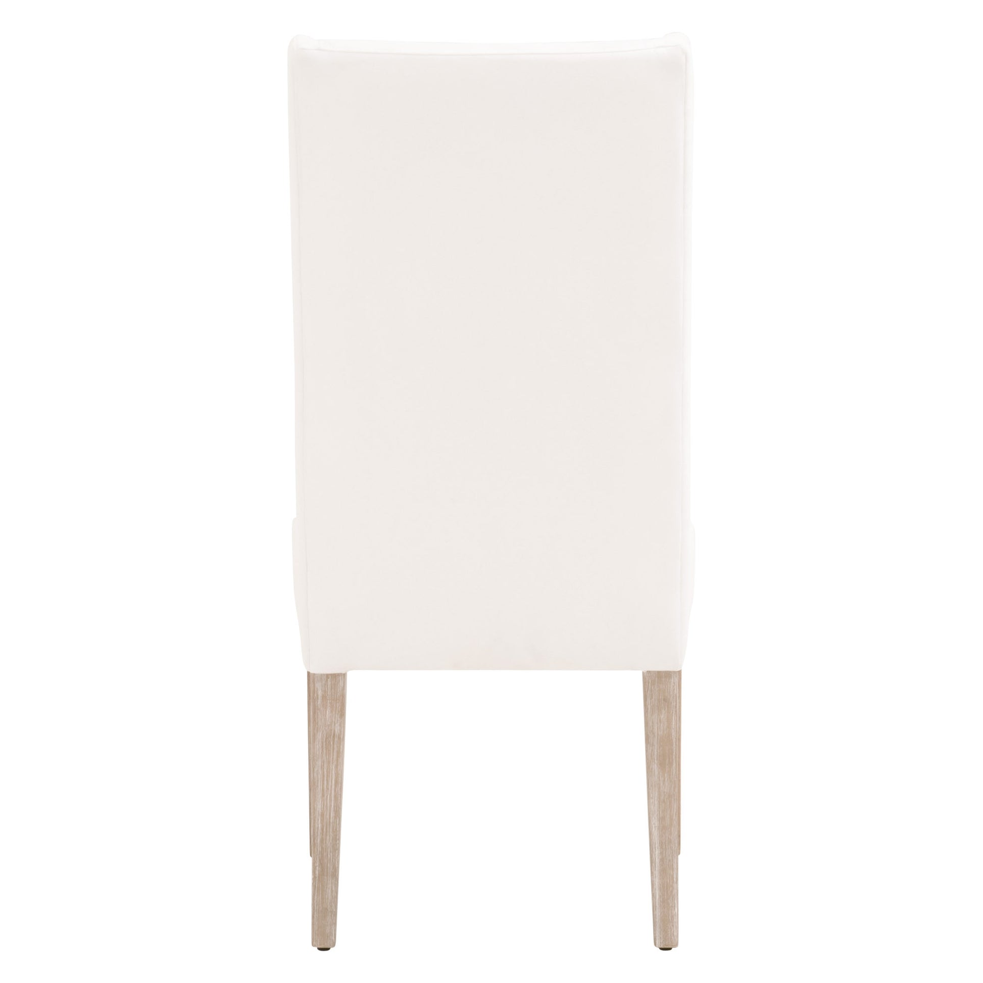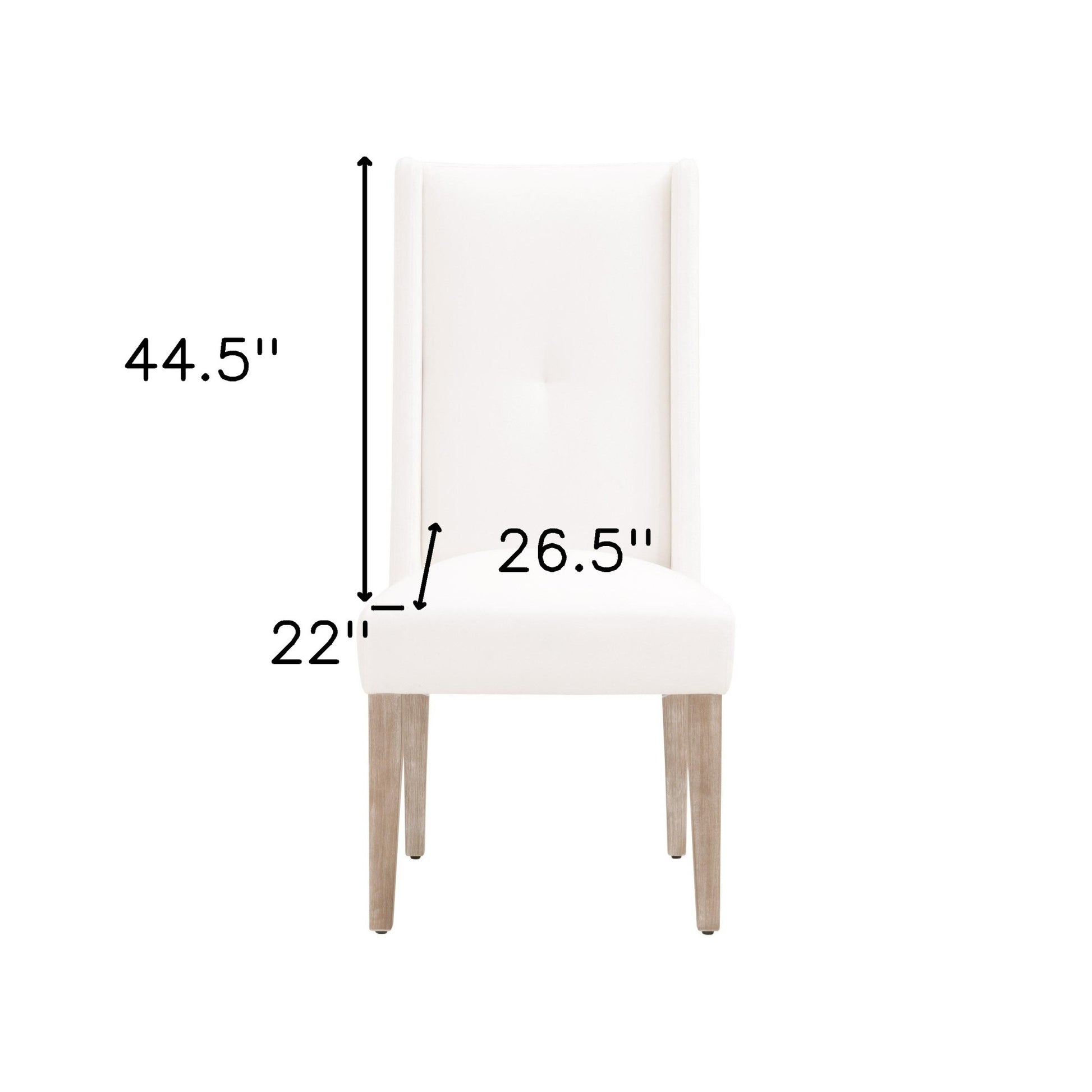 Make your dining experience the best with this set of two white and brown upholstered polyester side chairs. This armless chair has a sleek silhouette making it ideal for seating around the table but can also double as an accent chair. The solid back gives this chair its unique style. Dining chairs are a great way to compliment your kitchen or dining room but can also be used in the foyer, hallway, or any room you might need extra seating. 44.5-inch H x 22-inch W x 26.5-inch D