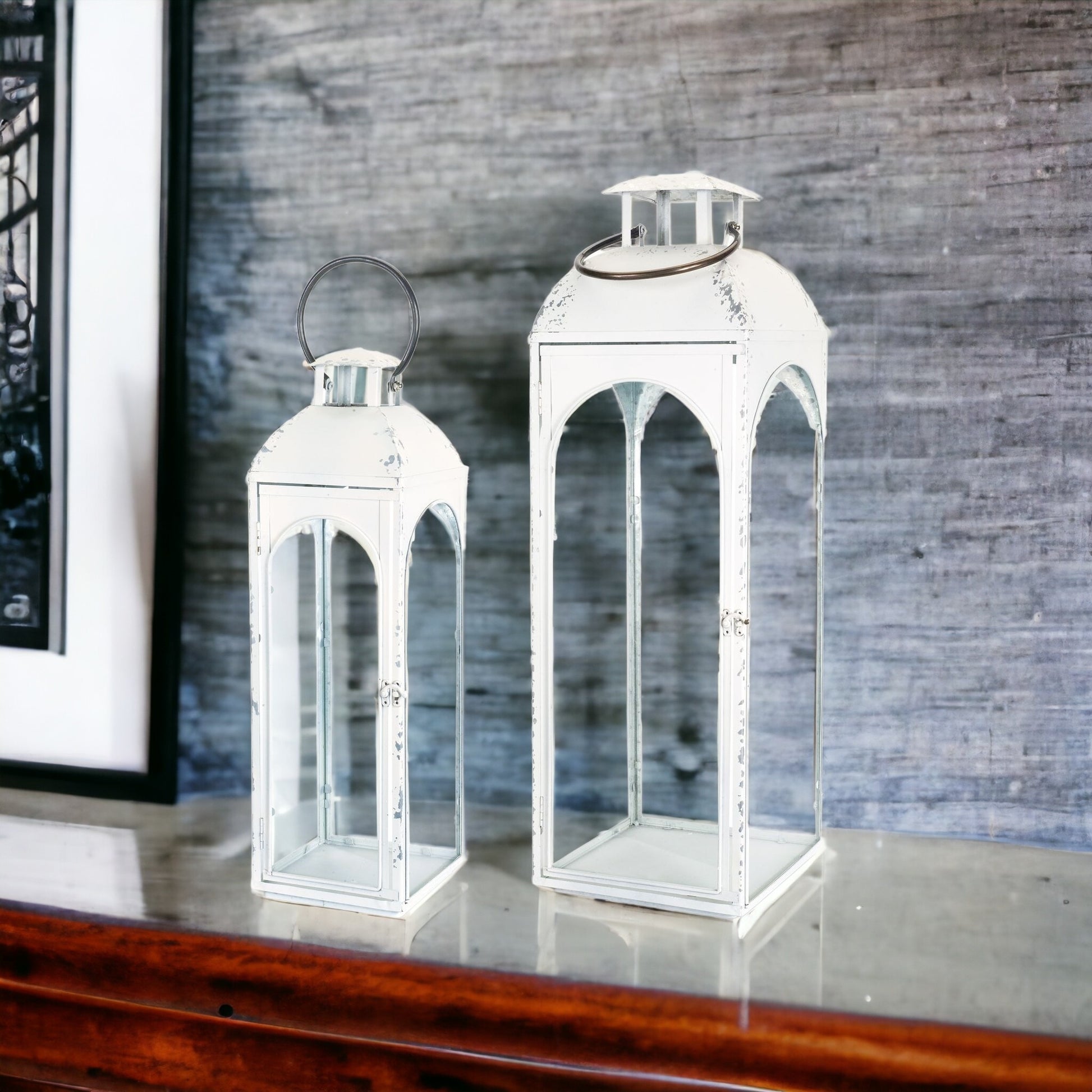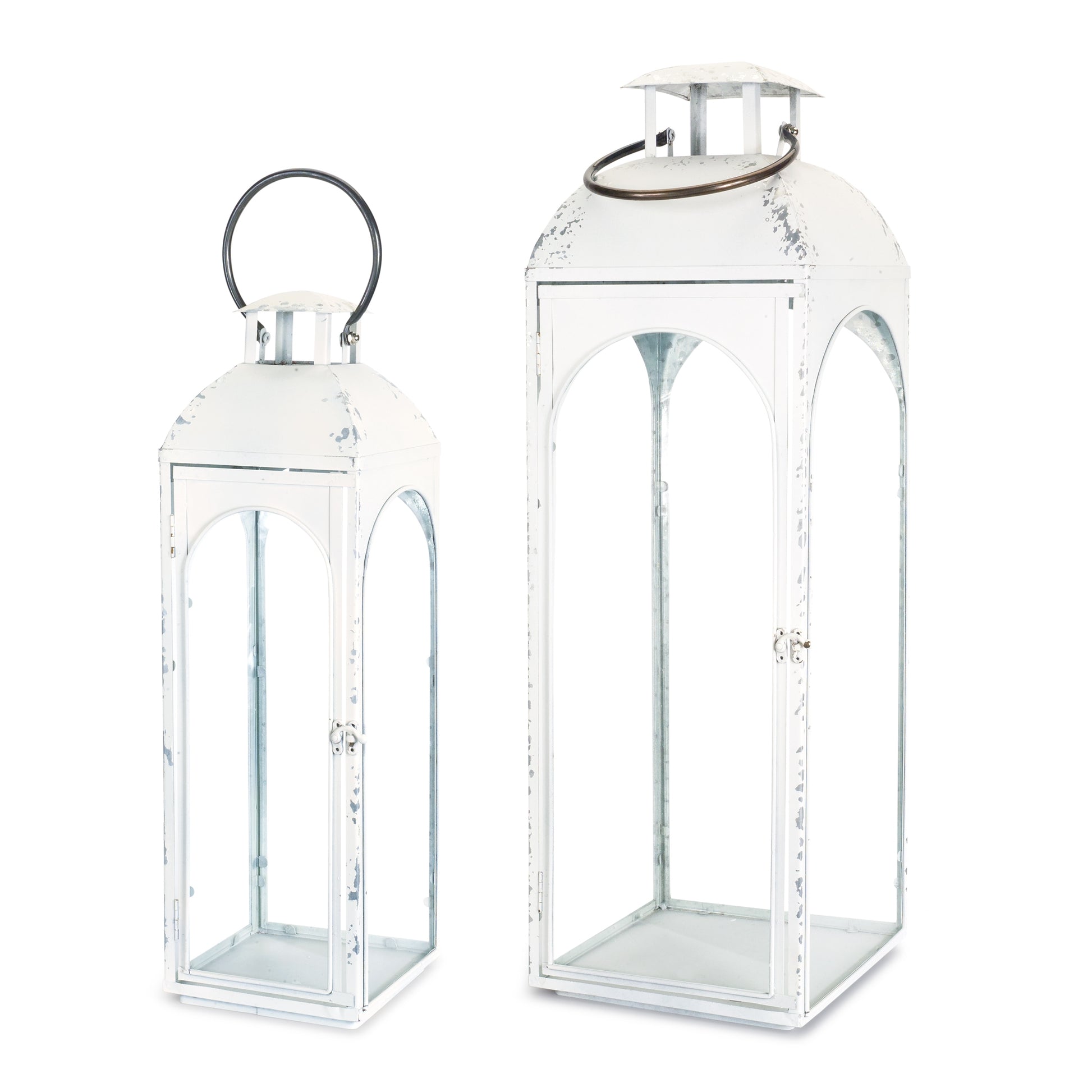 Stylize your tabletop, light up your back patio or add the perfect touch of low light to your living room with this set of two white flameless floor lantern candle holder. Pair with your favorite flameless candles and never worry about blowing them out before bed. Add an extra pop of personality to every corner of your home with this gorgeous candleholder Candleholders are a decorative accent on their own. They are also an attractive way to turn a simple candle into a piece of décor on its own. 30.75" H x 10.25" W x 10.25" D