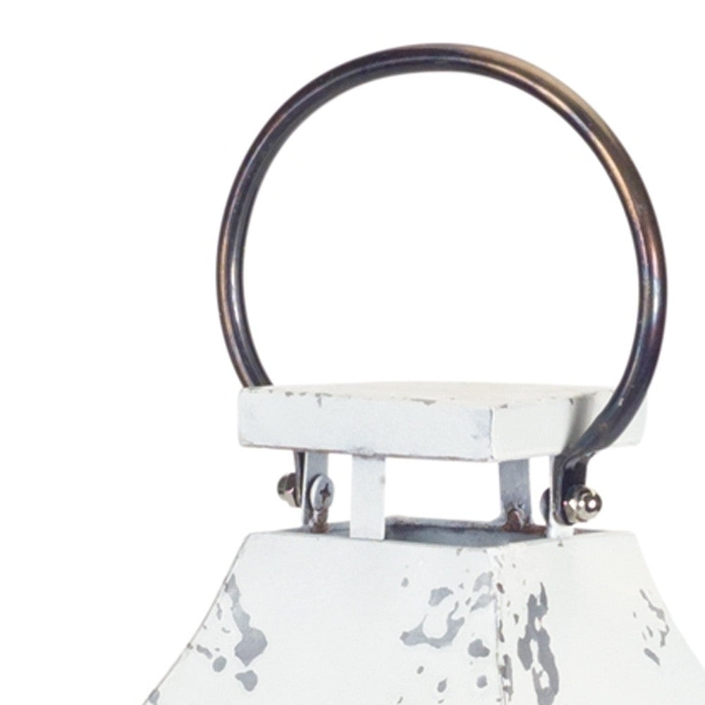 Set Of Two White Flameless Floor Lantern Candle Holder