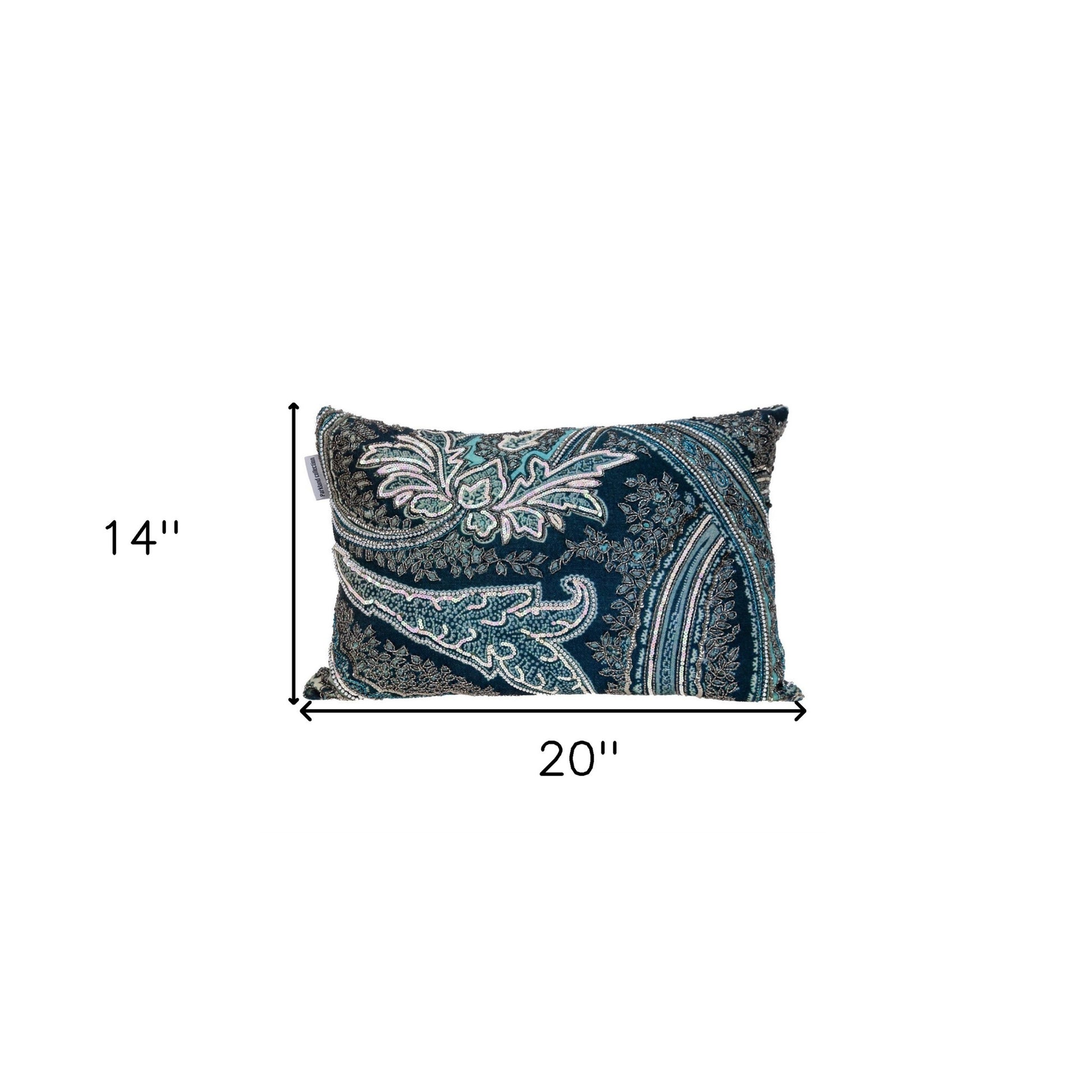 A sight to behold, the Shades of Blue Beaded Embroidery Decorative Throw Pillow adds a luminescent glow to your dull space. Emanating an ethnic presence, the throw pillow draws it's inspiration from the night sky with sparkling stars in a dark forest. Crafted from the softest of materials, the front of the pillow is painstakingly adorned with intricate embroidery like beads and spangles, that enhances the dazzling nature of the pillow. The teal colored back of the pillow conceals a compact hidden zipper provided for easy removal. Add an artistic touch to your home with this luminous decorative pillow. 14" x 20" x 4"