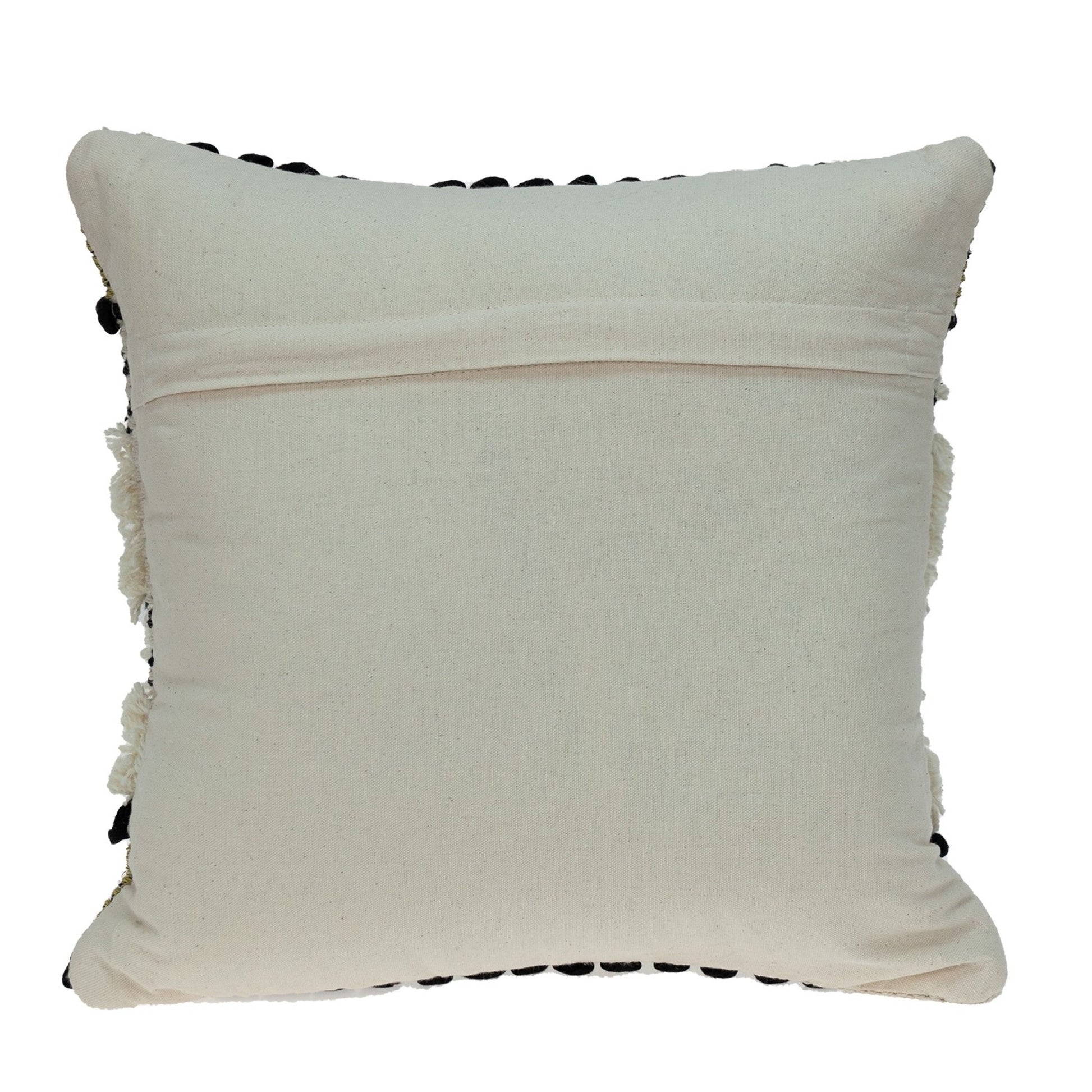 Add a lot of amazing textures and style to your living room furniture with the Shaggy Woven Throw Pillow. This neutral pillow features a variety of textures in the form of small fringes, woven knots, geometric patterns, etc., everything in different attractive colors, thereby giving the pillow a luxurious look. The addition of gold accents to it is a posh touch. 17.72” x 17.72” x 4”