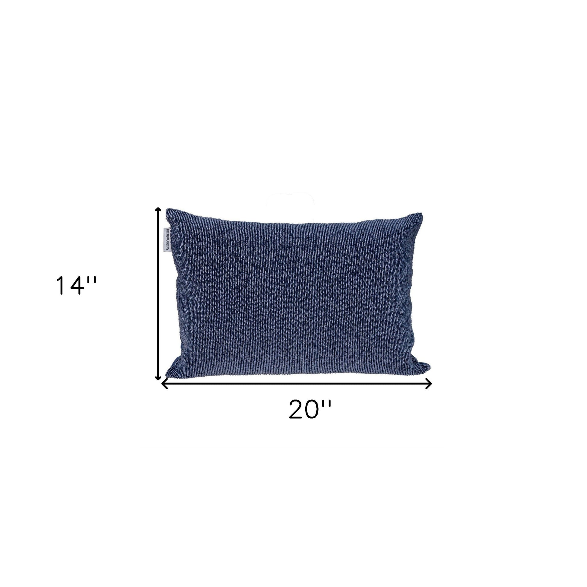 Spruce up your pillowscape design by adding a touch of glam with the Shimmering Blue Beaded Luxury Throw Pillow. Bold and jazzy this monochromatic exquisite pillow doesn't shy away easily from the limelight. Meticulously woven the beaded stripe design engulfs the entire pillow adding a sense of heavenly comfort combined with textured sophistication. On the reverse is an all cotton solid color cloth finish which conceals a hidden zipper, a clever design for easy maintenance. Rejuvenate your living space by clubbing this royal throw pillow with your neutral sofa or bed for a hint of shimmer and shine. 14" x 20" x 4"