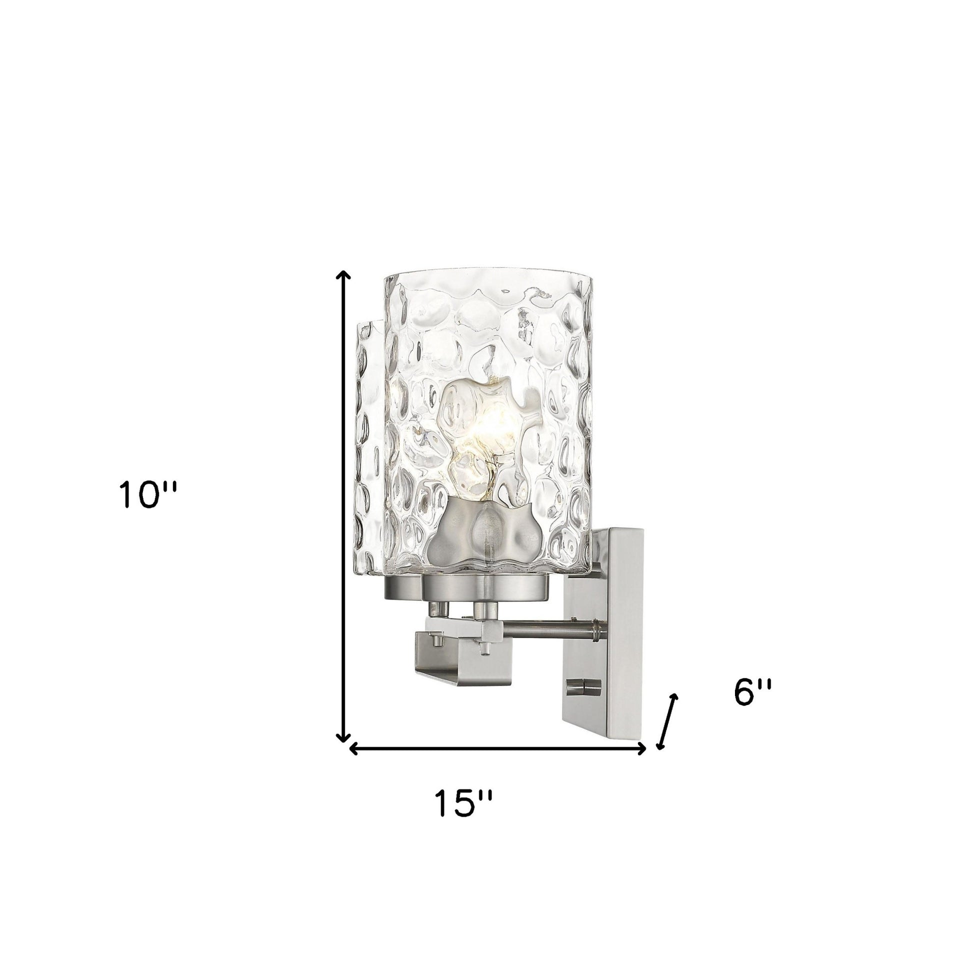 Silver Metal and Pebbled Glass Two Light Wall Sconce