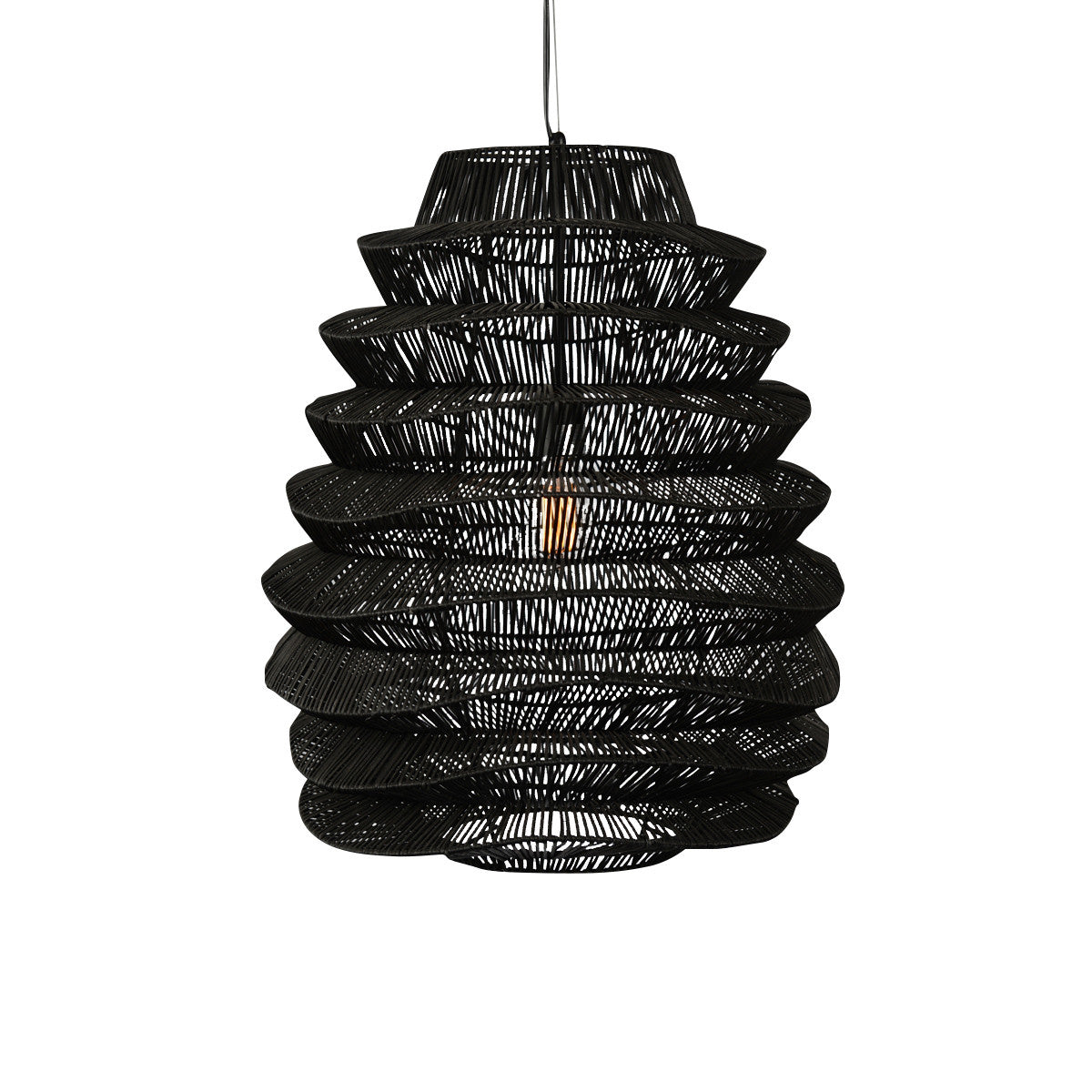 Shed a new light on your space with this illuminating single rattan dimmable ceiling light with black shades. With its black finish, this light fixture gives off a modern and updated vibe. This light will require hardwiring installation. This fabulous hanging light is a great way to add some design and brightness to any space in your home. 23.6" H x 19.7" W x 19.7" D