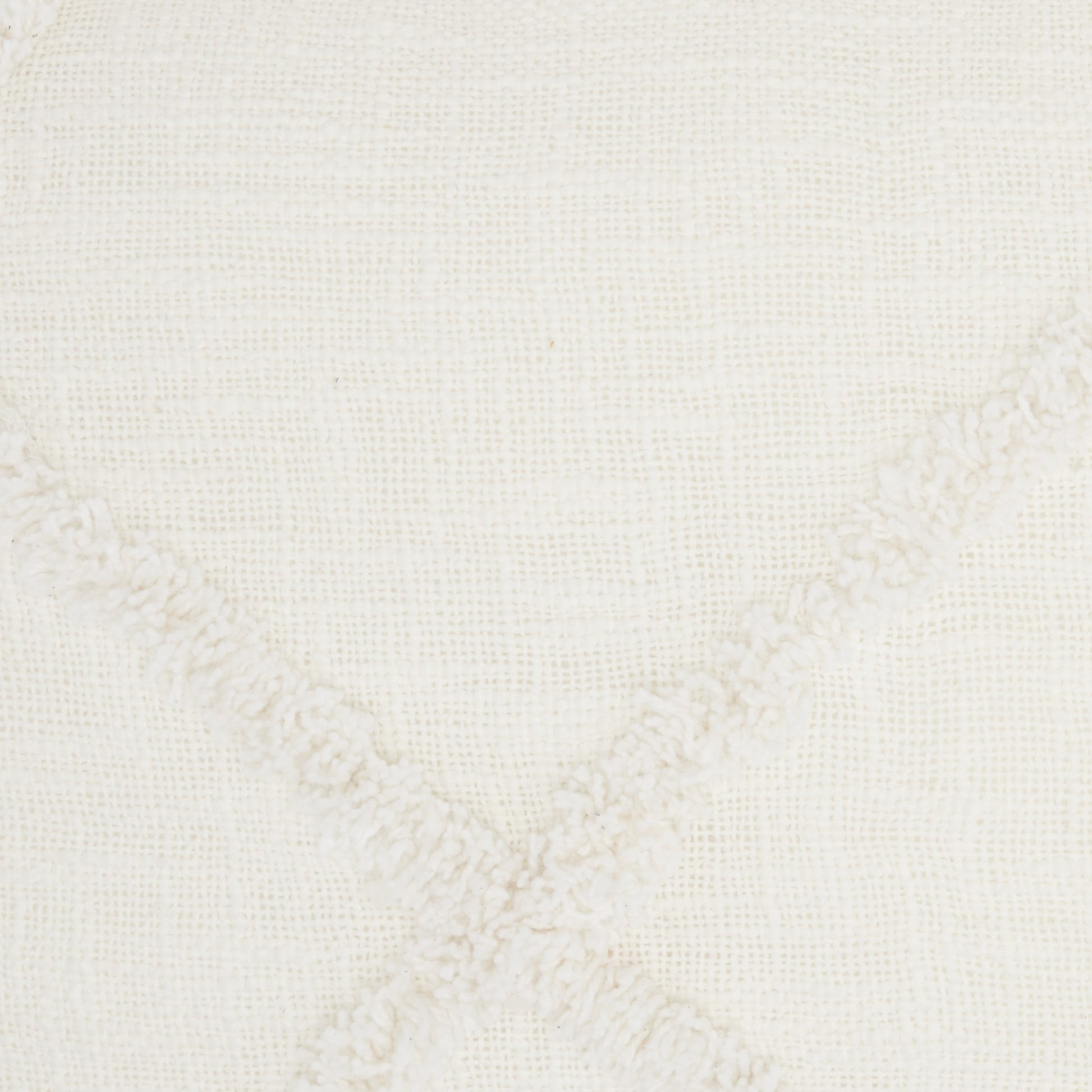 With this White Shaggy Detail Lumbar Pillow you can add the perfect mix of design and comfort to your home. This pillow has a rectangular shape and is covered in a textured white colored fabric. On top of this fabric there are shaggy thread lines in a geometric pattern that are in the same white color. The same colored details add a touch of depth and dimension to the overall look of this pillow and will elevate any seating space in your home. You can use this pillow to style up your bed, your couch, or any other seating area in your home and it will work with any existing colors or decor styles you may already have. 5" H x 14" W x 24" D