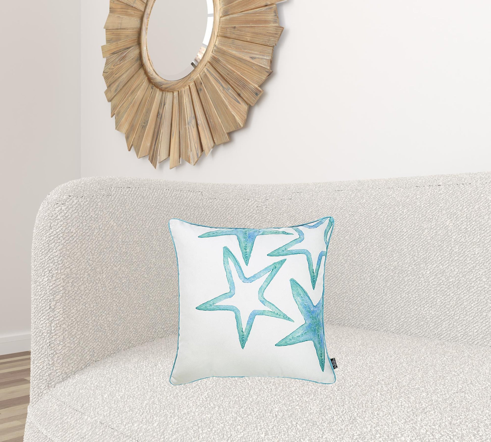 White And Aqua Blue Starfish Decorative Throw Pillow Cover
