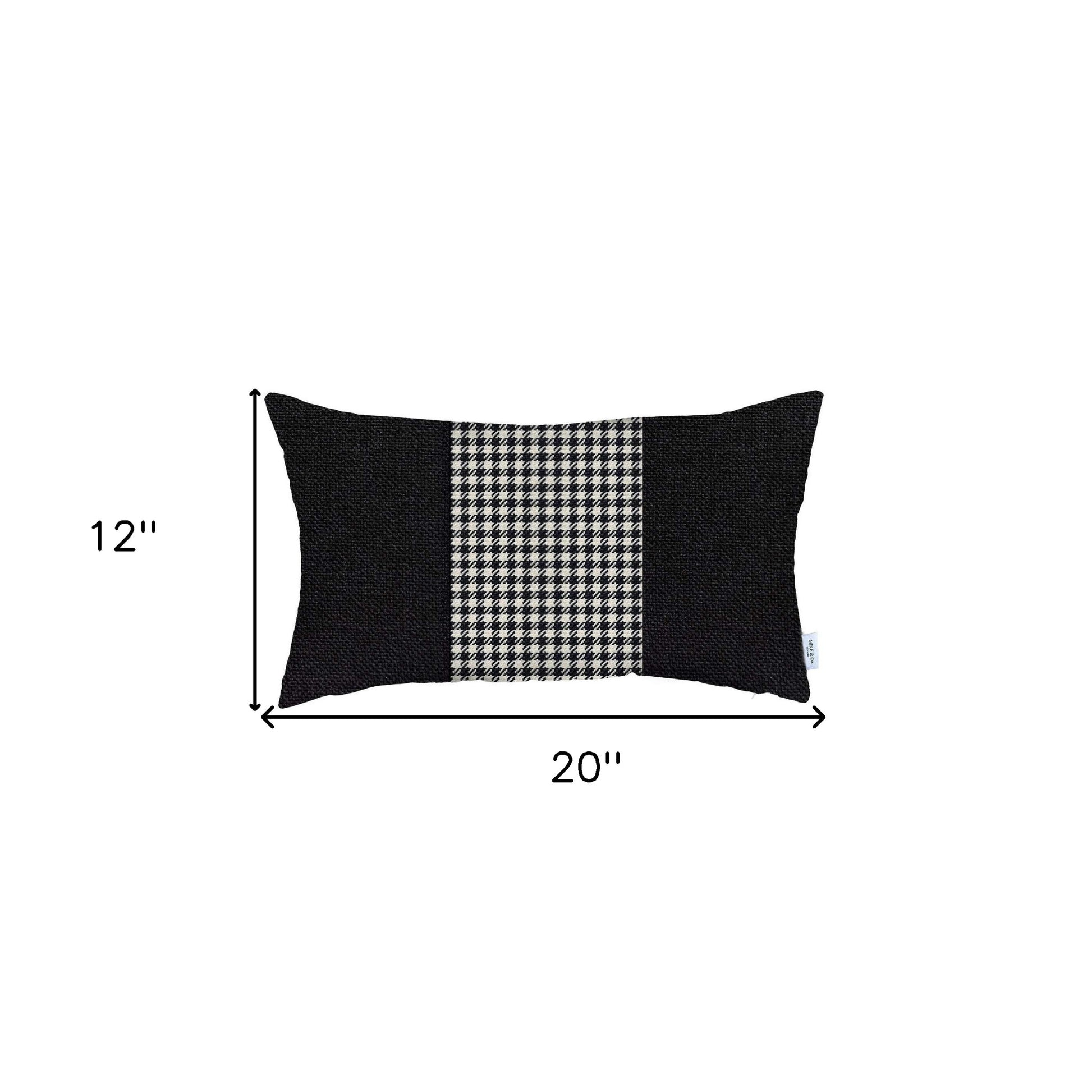 Embodying the beauty of modern artistry, this White and Black Houndstooth Lumbar Throw Pillow will bring an elegant touch to your contemporary décor. The black and white jacquard weaved houndstooth pattern in the center of the matte black base creates an alluring visual experience. Durability and longevity is ensured by fine Turkish craftsmanship with OEKO-TEX Standard 100 certified polyester fabric. The handmade pillow only needs to be spot cleaned to keep it looking pristine for ages. To give it a seamless and uniform look, the zipper is kept in a hidden closure. The eco-friendly and nonallergenic insert is not only easy to clean but also provides a soft and cozy feel to the touch. Your modern home will look its best with this decorative throw pillow while helping you express your love of classy patterns. 12” x 20” x 1”