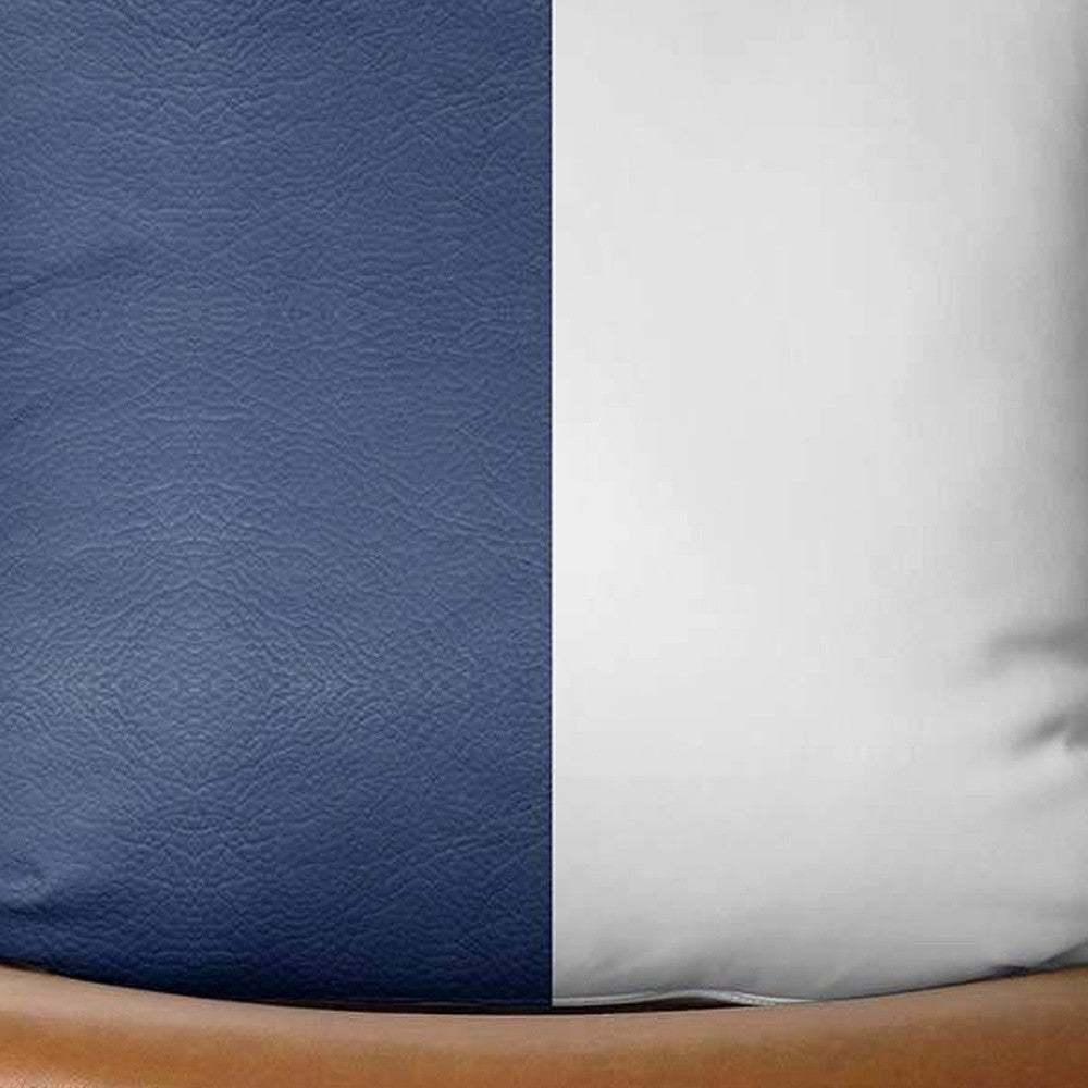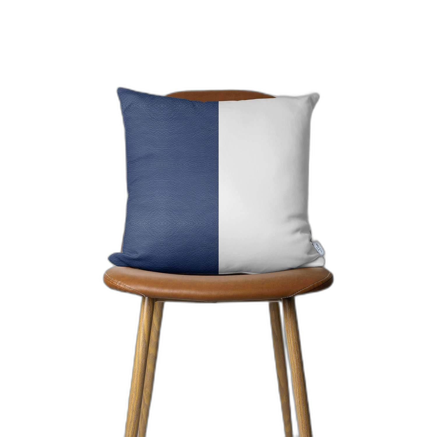 Create a remarkable contrast in your home styling with this White and Navy Faux Leather Square Throw Pillow. The square-shaped pillow features two shades, with one entailing a deep navy blue vegan faux leather upholstery and the other a pearl white polyester finish to perfection. Crafted in Turkey with high-quality polyester and vegan faux leather to ensure durability, color intensity, and ease of maintenance. The hidden zipper closure is an add-on for a seamless and smooth appearance, while the fabric is OEKO-TEX Standard 100 certified, ensuring product quality and safety. It also sports a high-quality poly filling inside to provide optimum comfort and a luxurious feel as you lean on it. The prominent parting of the two fabrics caters to a boho-modern vibe that fits in with any décor upgrading the overall setting. 18” x 18” x 1”
