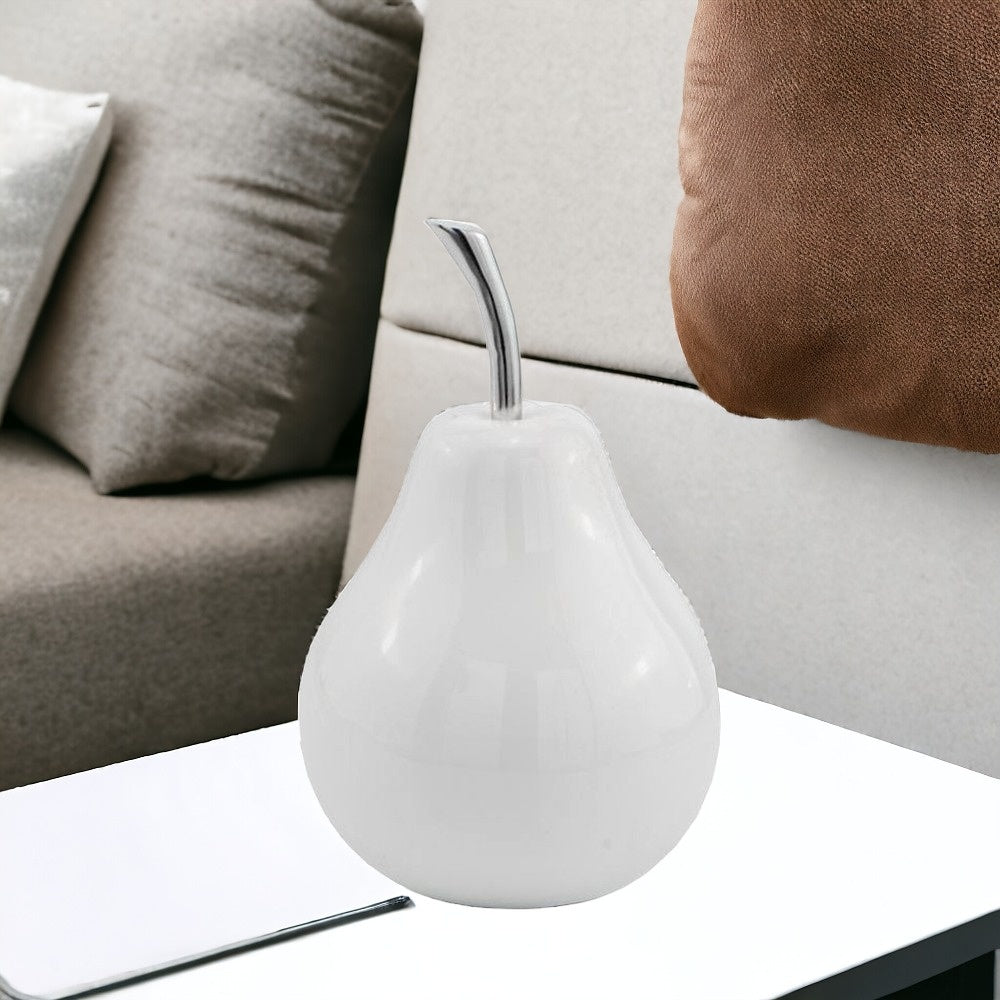 White Coated Mini Pear Shaped Aluminum Accent Home Decor