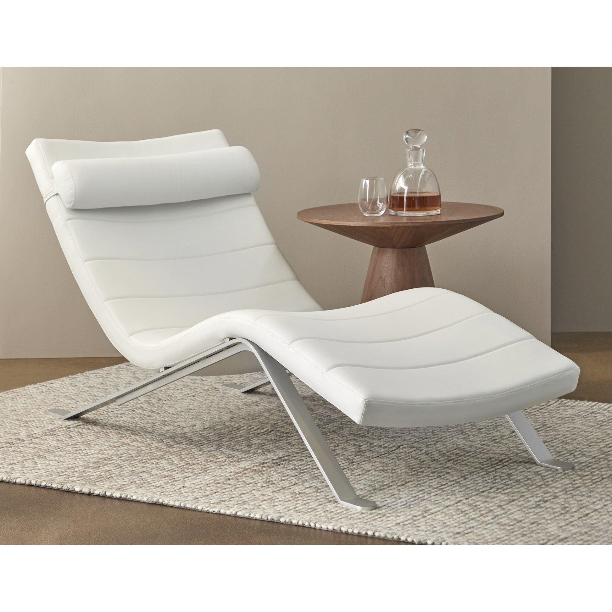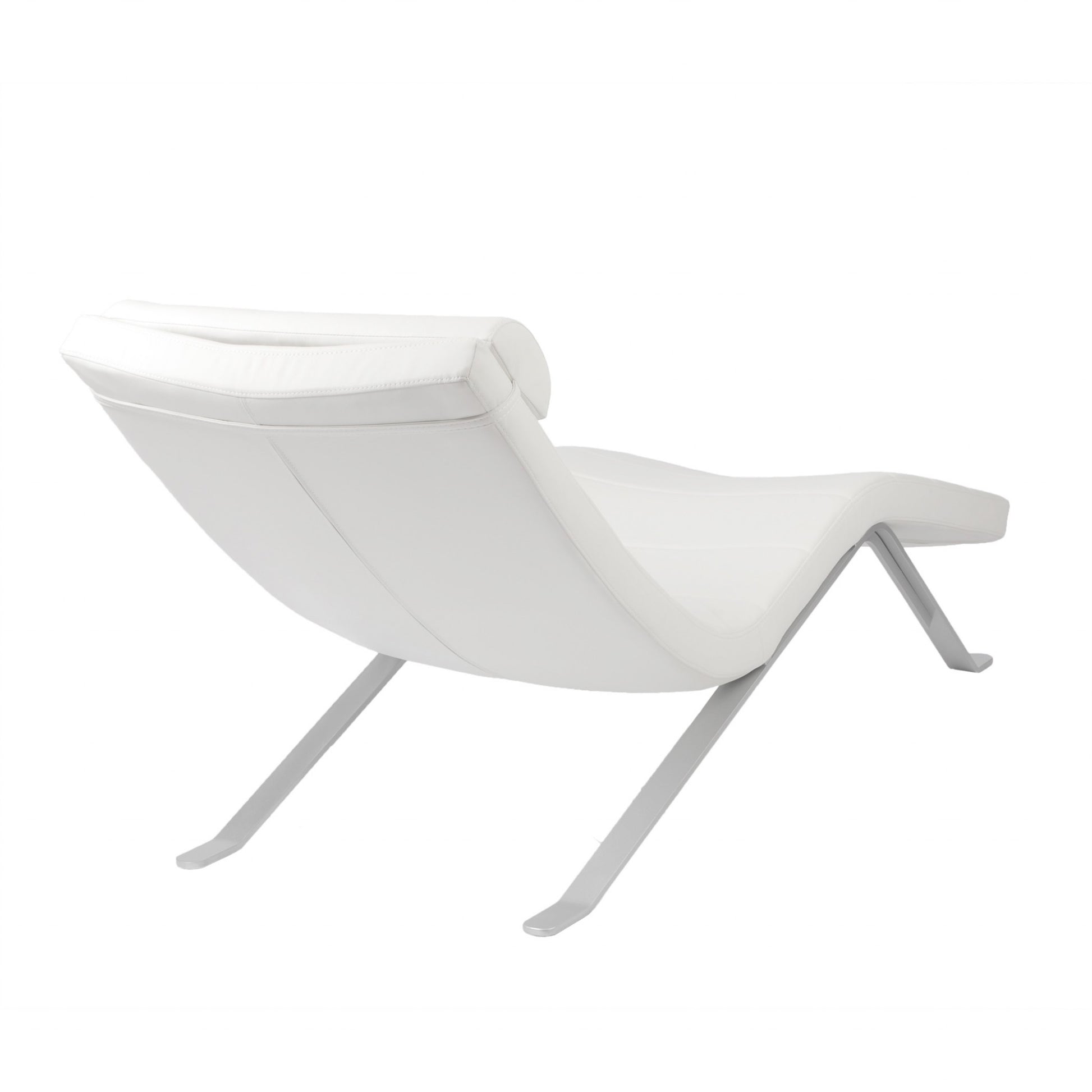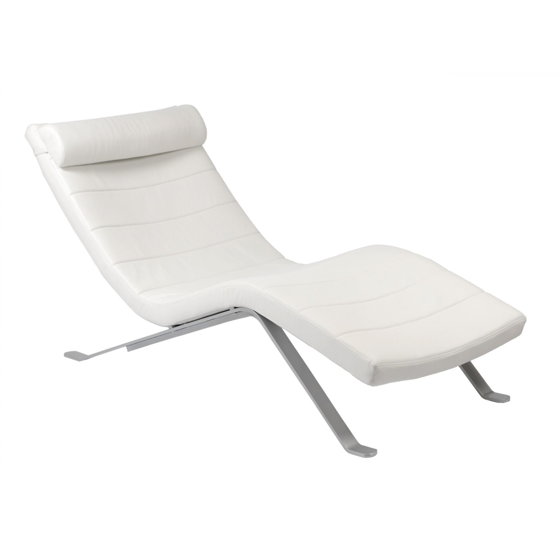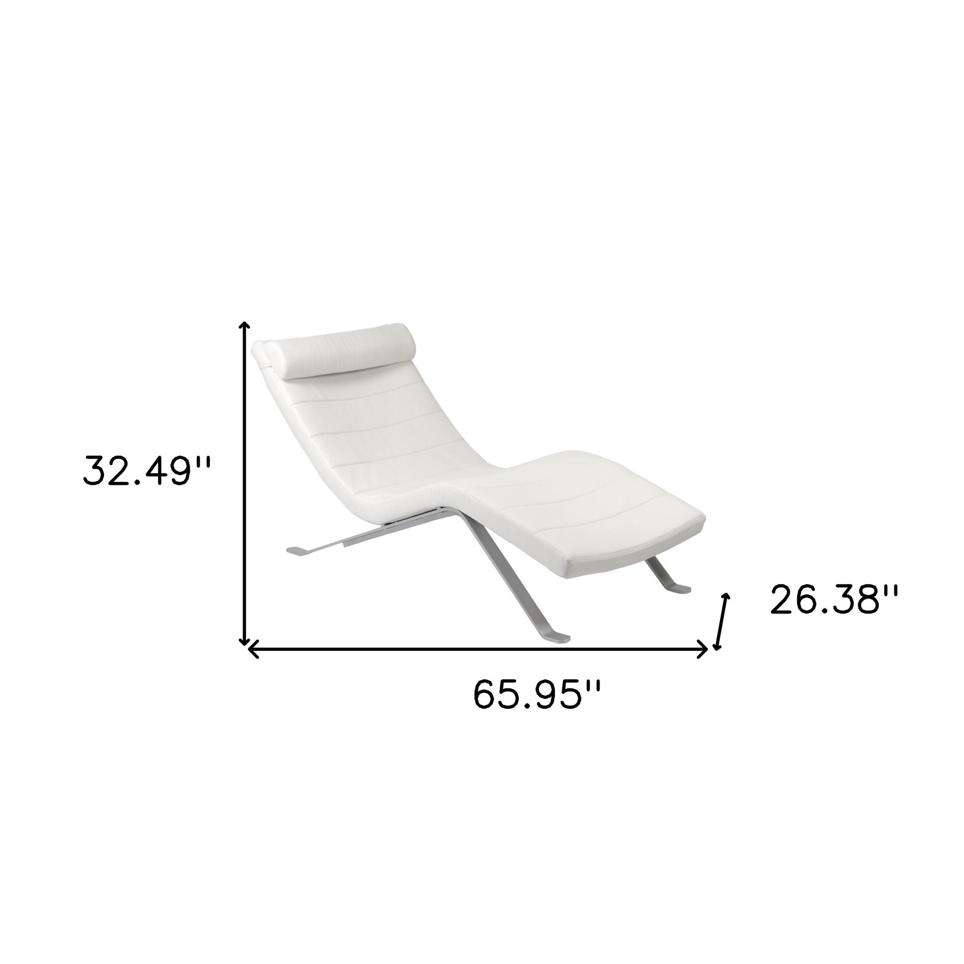 White Faux Leather and Chrome Wavy Chaise Lounge Chair
