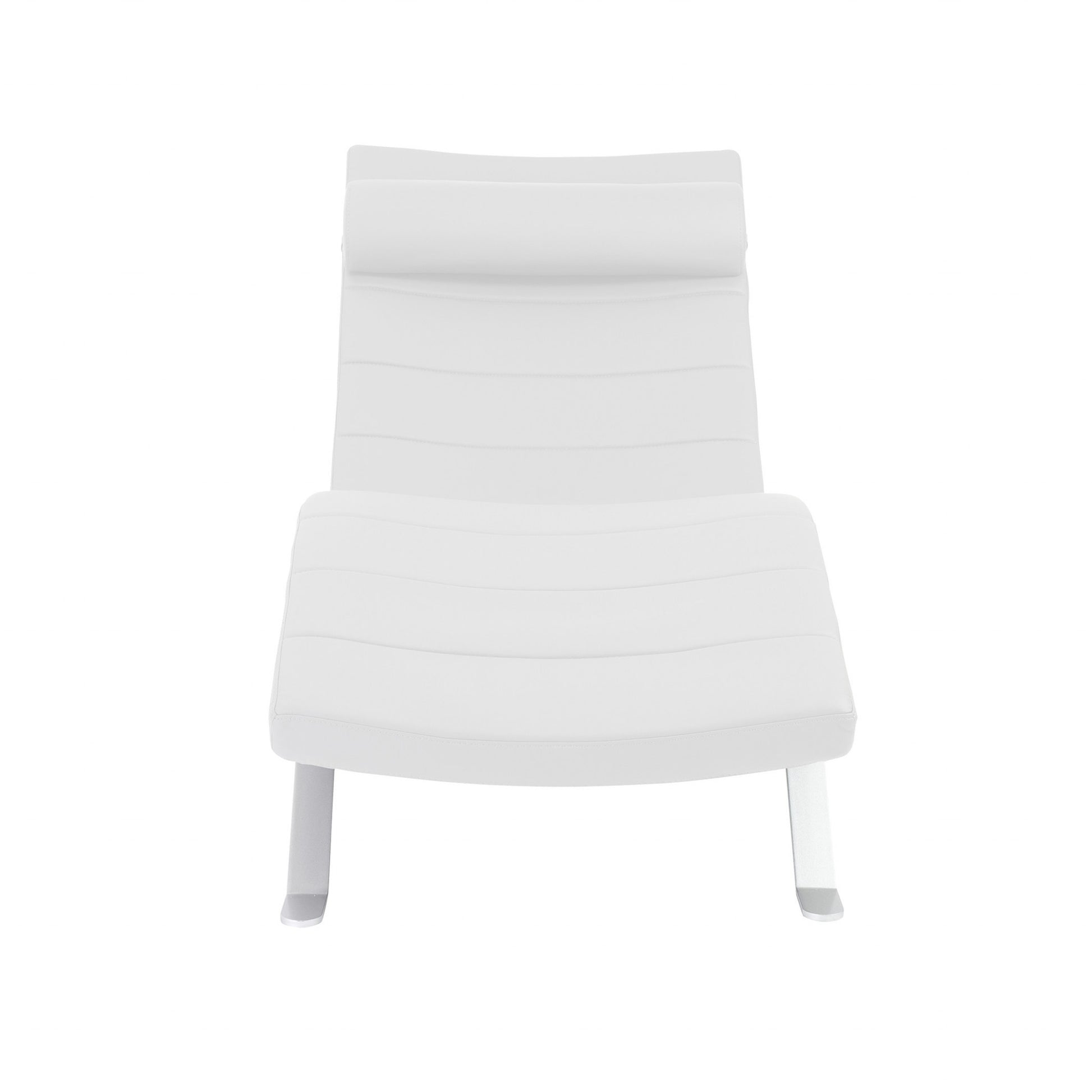 Make your living room the perfect place to relax with this White Faux Leather and Chrome Wavy Chaise Lounge Chair. This piece has the classic chaise lounger shape and is covered in a soft and gorgeous clean white faux leather upholstery with horizontal line seam detailing. There is an adjustable head rest piece at the top that can be removed. The base of this lounger is made from metal and is colored to a silver finish. This chaise lounger is the essence of relaxation and will add the perfect pop of style to any space you decide to use it in. 32.49" H x 65.95" W x 26.38" D