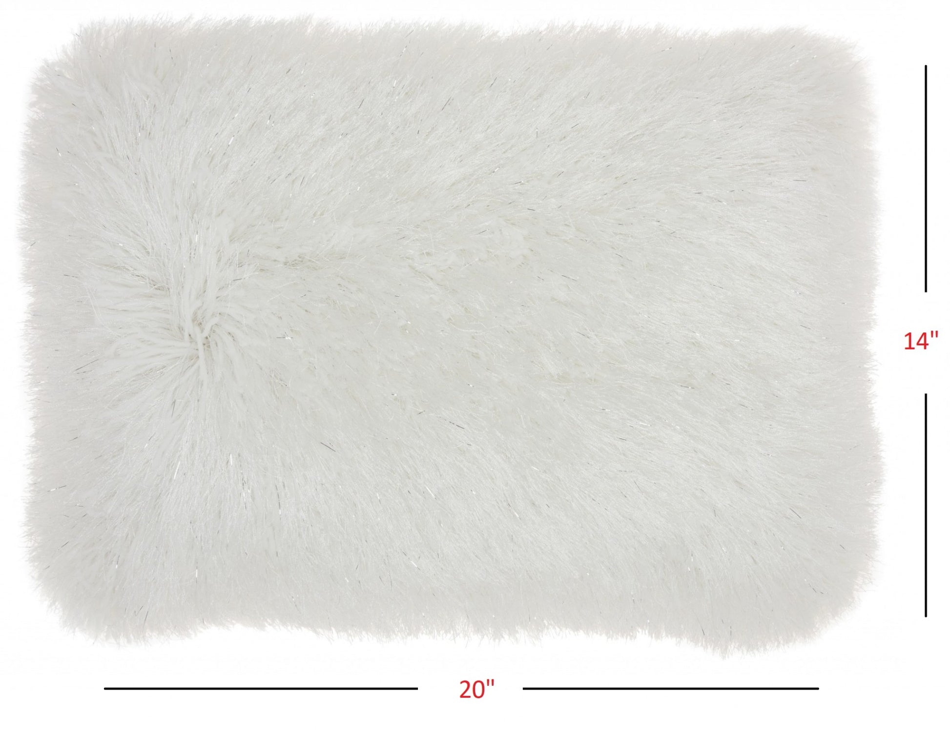 Encourage an indulgent style into your home with the addition of this luxurious and fun White Super Shaggy Modern Throw Pillow that will uplift the aesthetics of your living space while being functional. The neutral white faux fur shaggy fashion adds to its elegance providing a scrumptiously soft and stylish surface texture that looks great and is comfortable too. Super soft and cozy, this throw pillow is made of 100% polyester. The full and fluffy look of this shaggy throw pillow will instantly transform any space. 14” x 20”x 6"